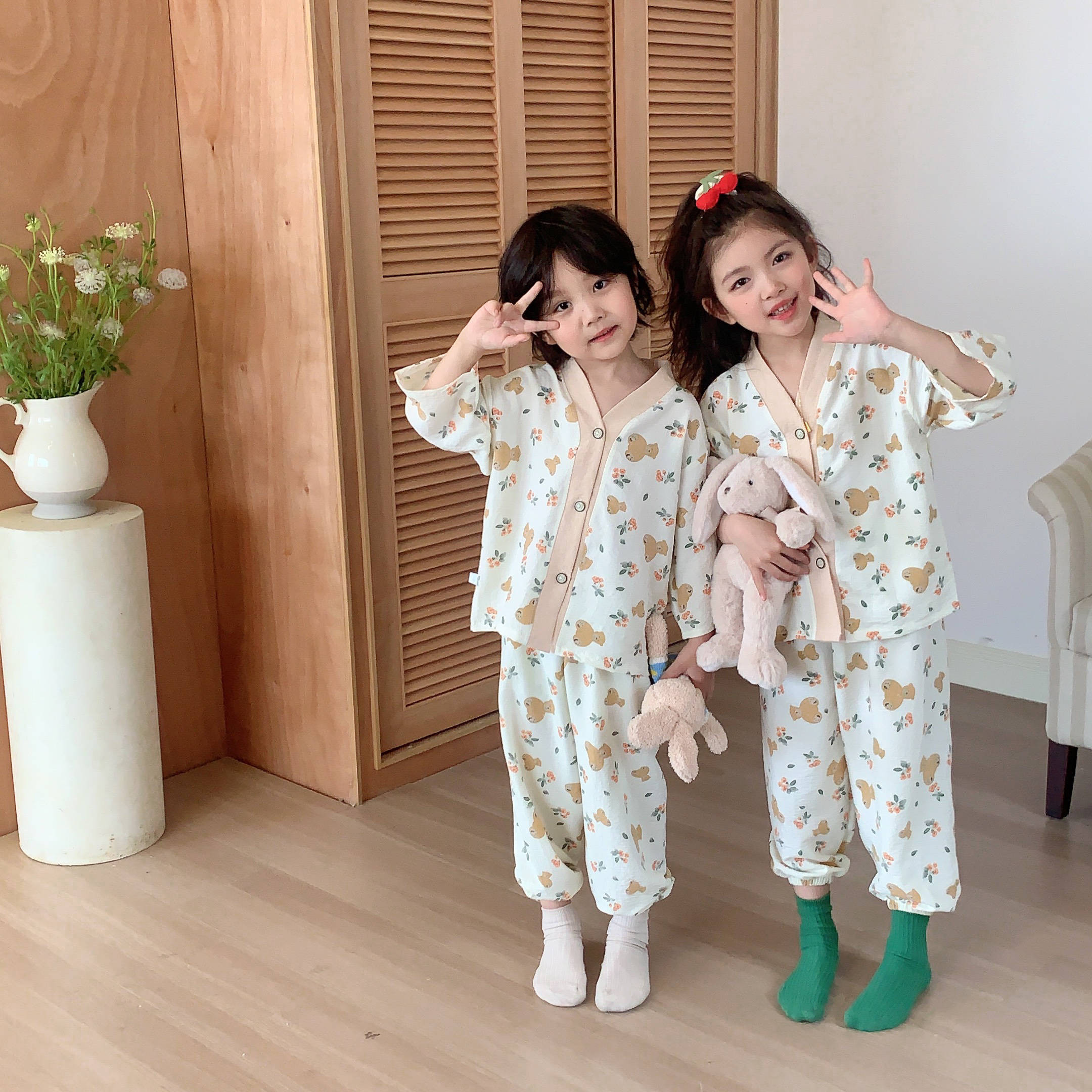 【39/套】新款儿童家居服套装男女童宽松薄款睡衣宝宝韩版空调服两件套聚
