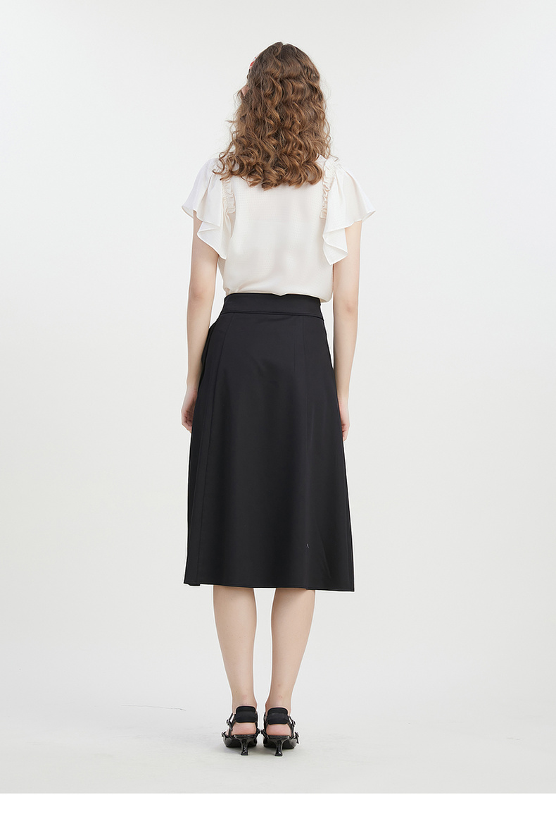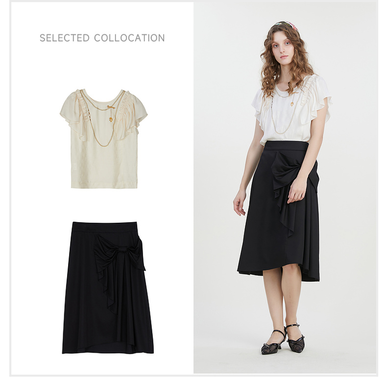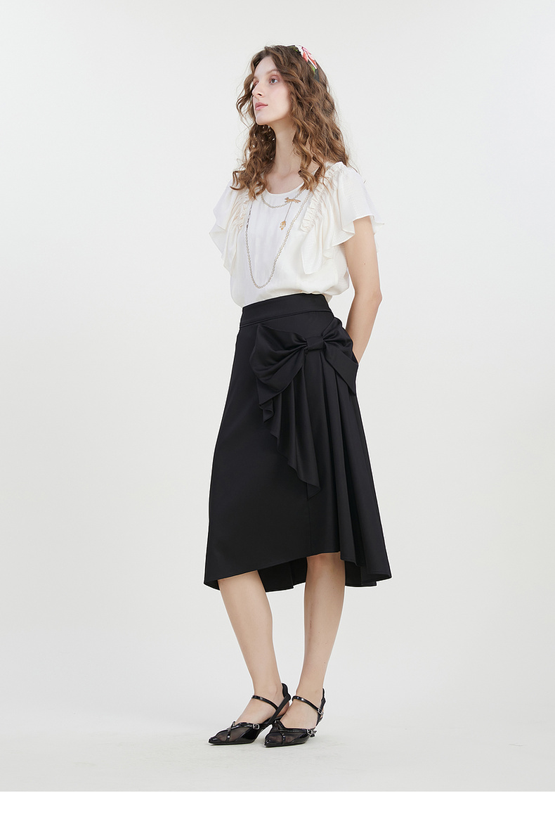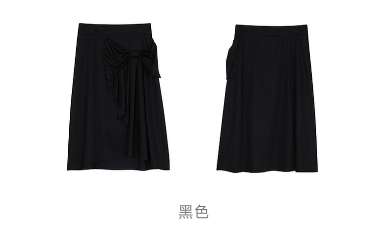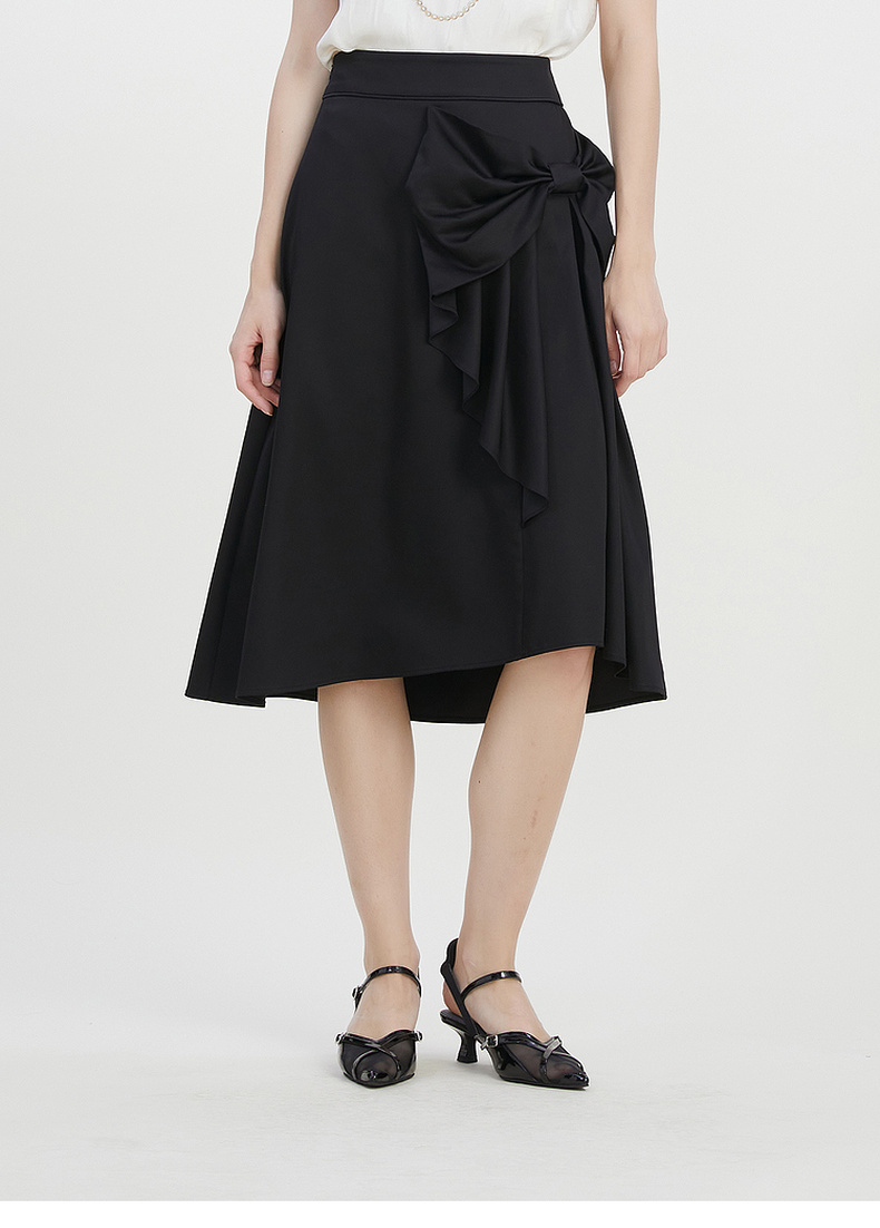 谜底A字型中长裙2023夏季新款气质通勤蝴蝶结纯色半身裙232MB0680