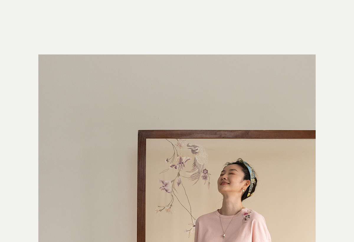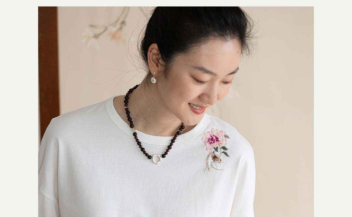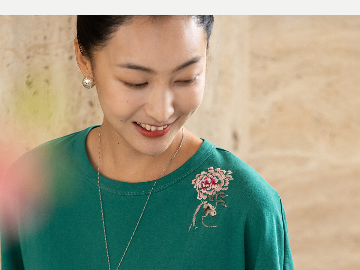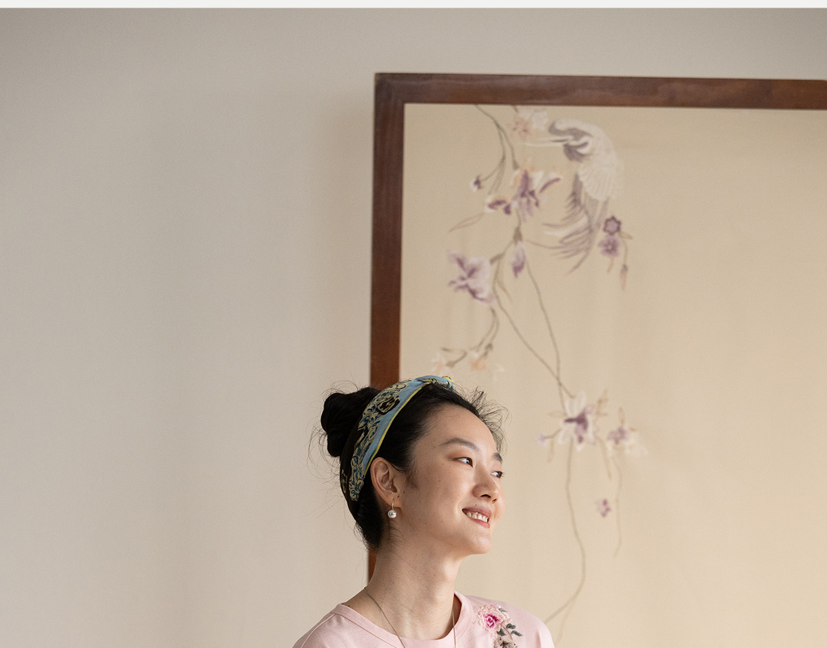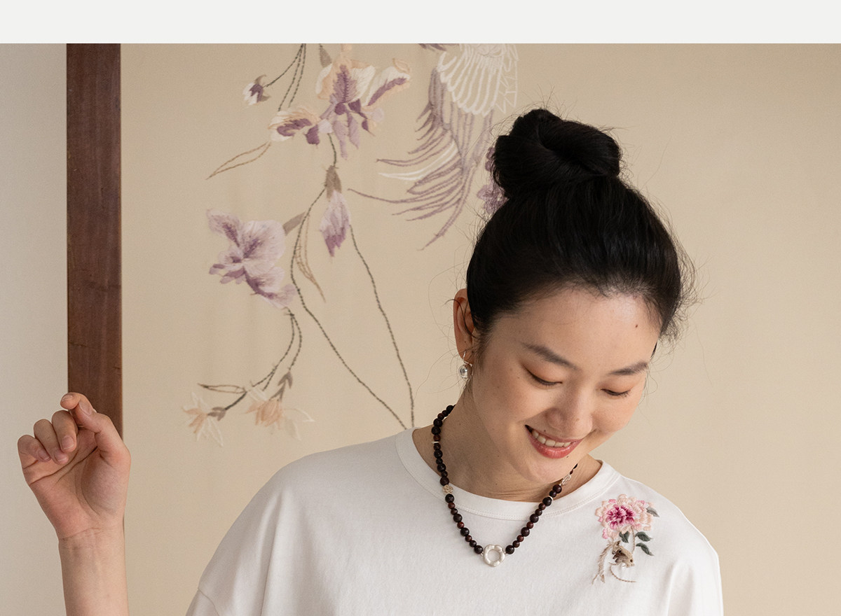 牧衣游原创20支手工刺绣棉质T恤宽松圆领纯色简约百搭短袖 迎春乐