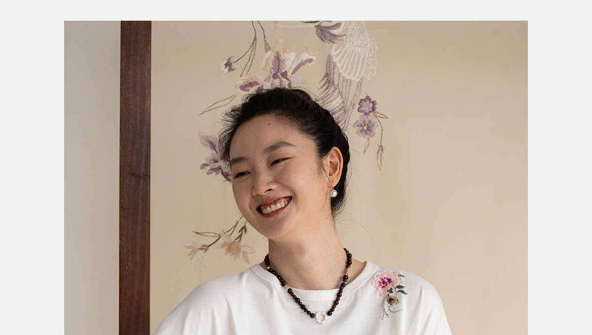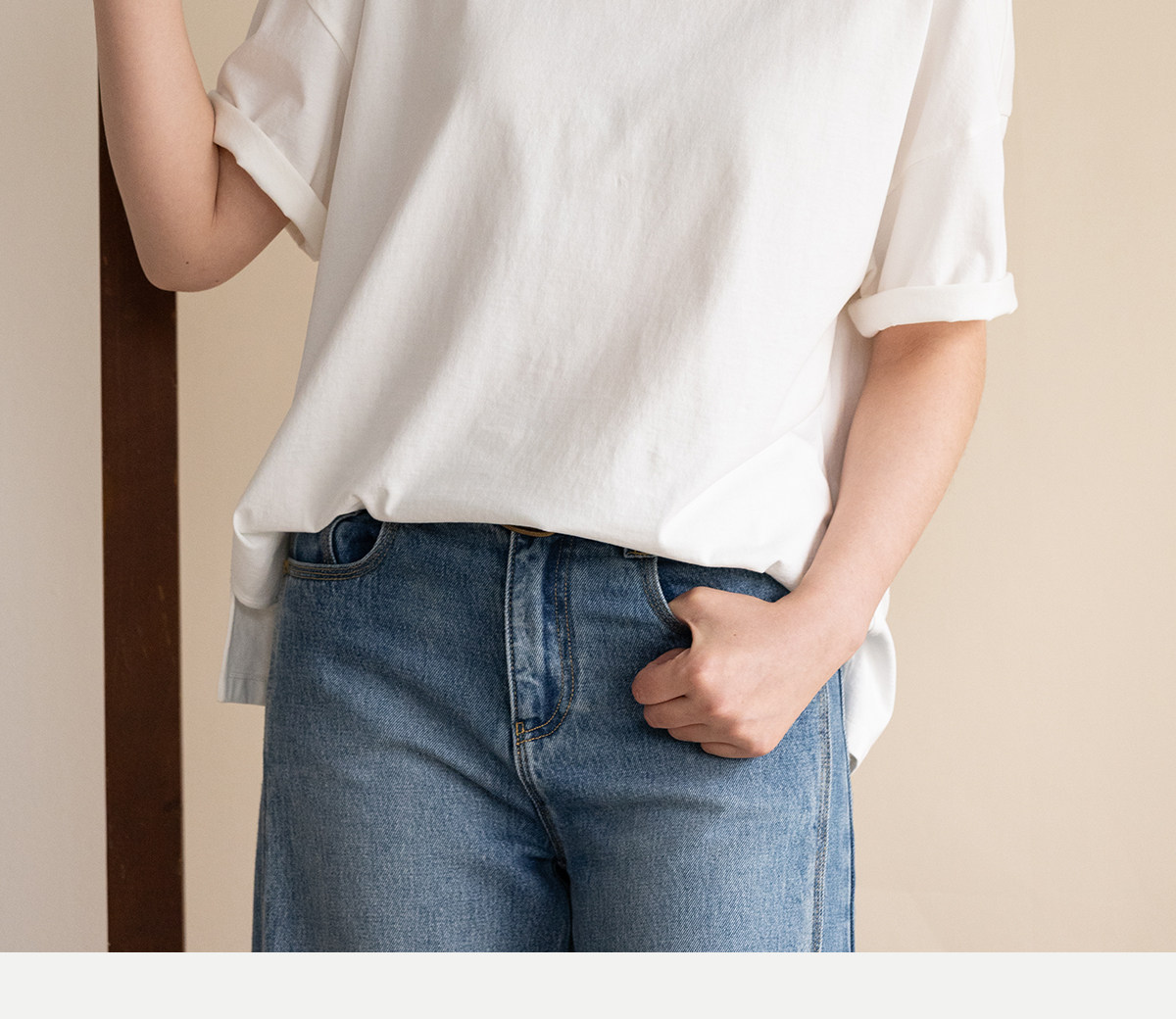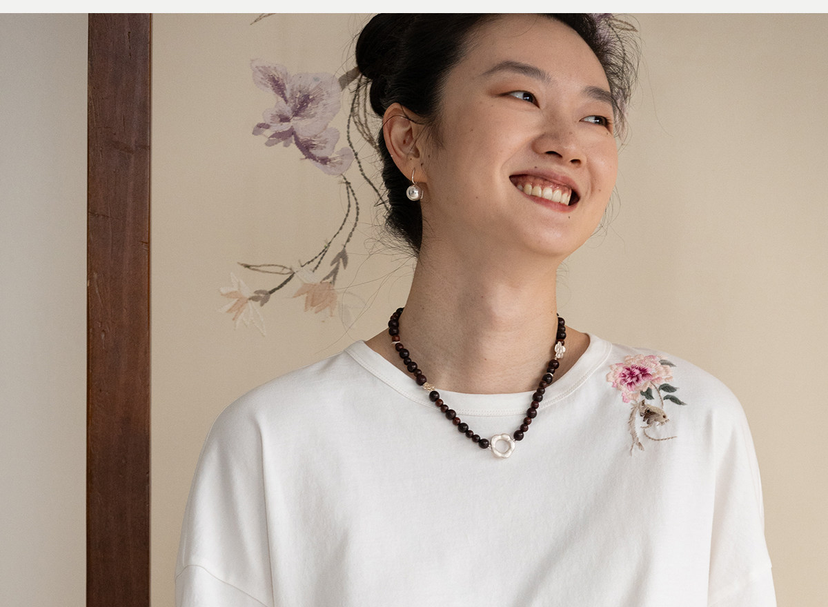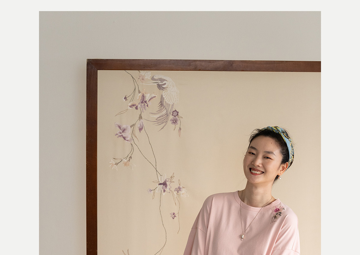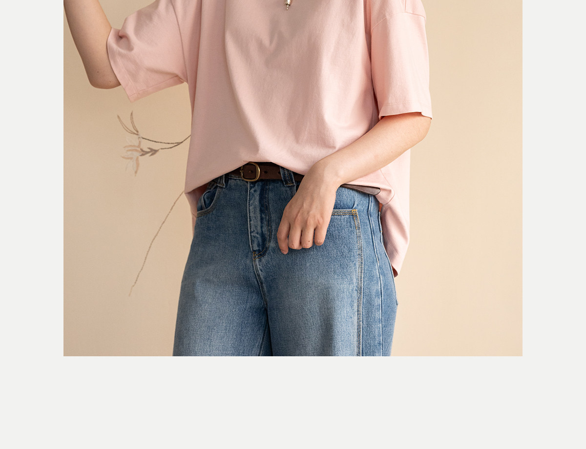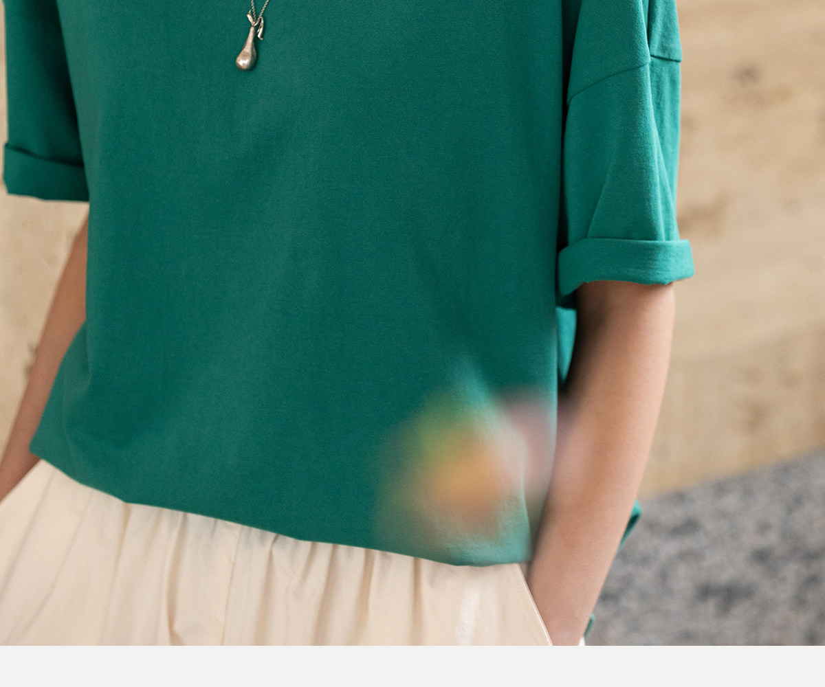 牧衣游原创20支手工刺绣棉质T恤宽松圆领纯色简约百搭短袖 迎春乐