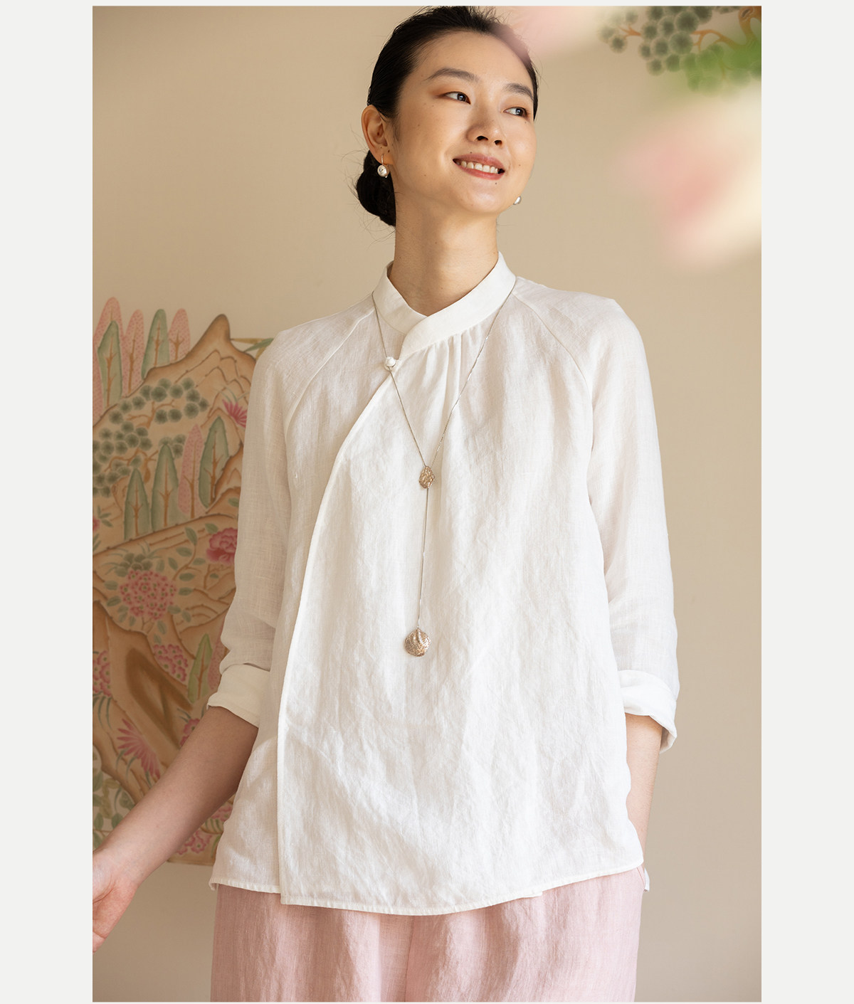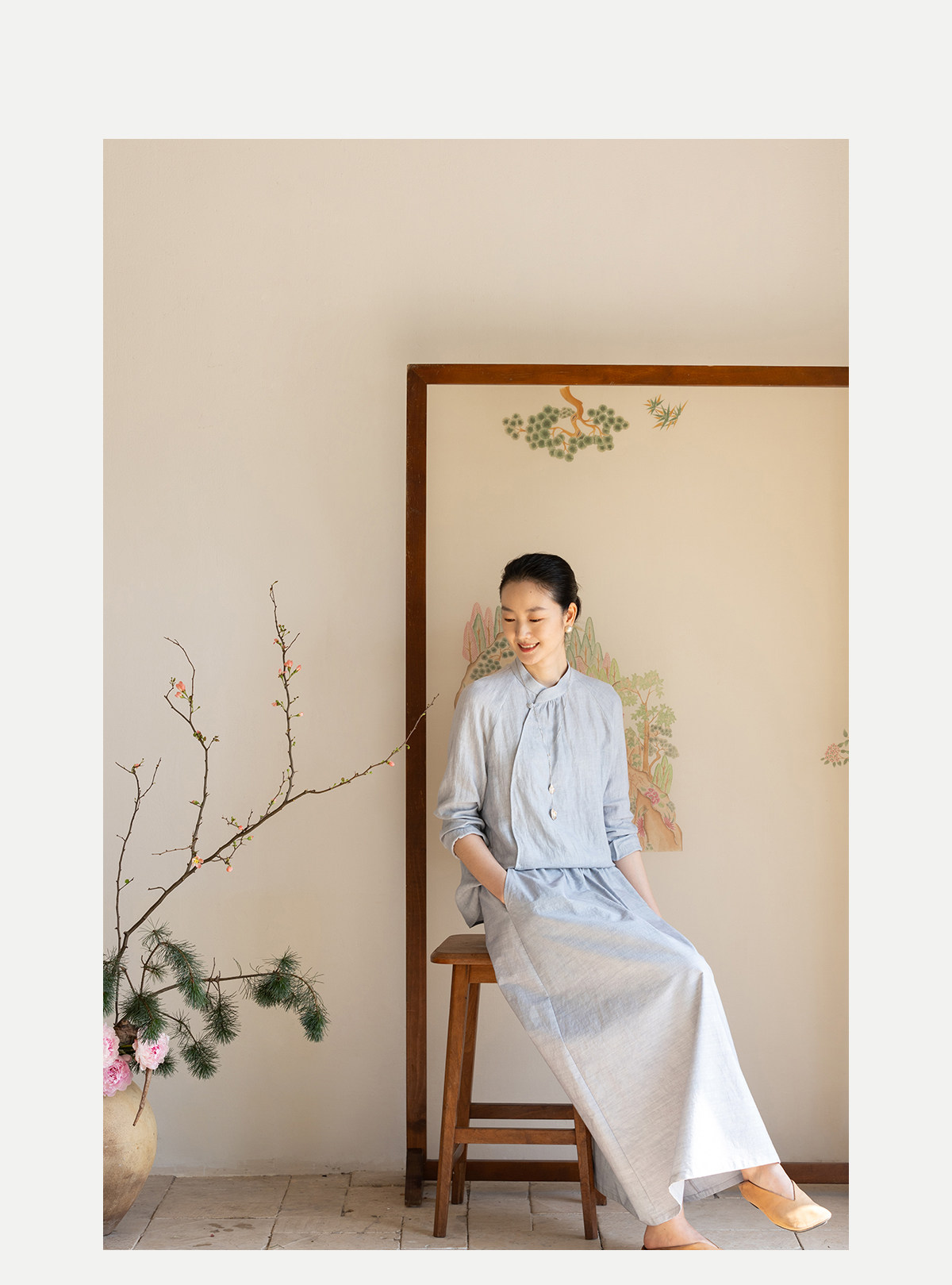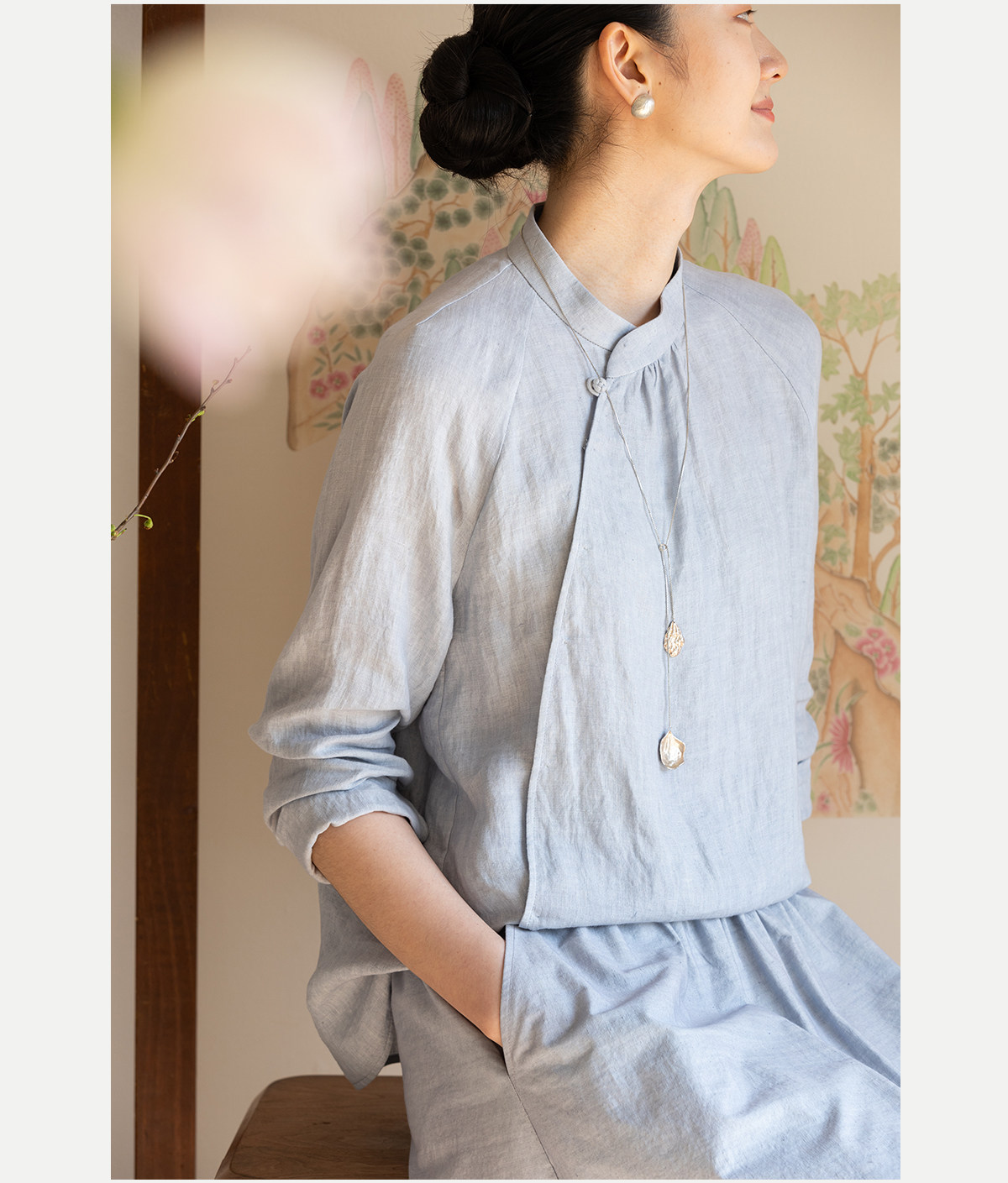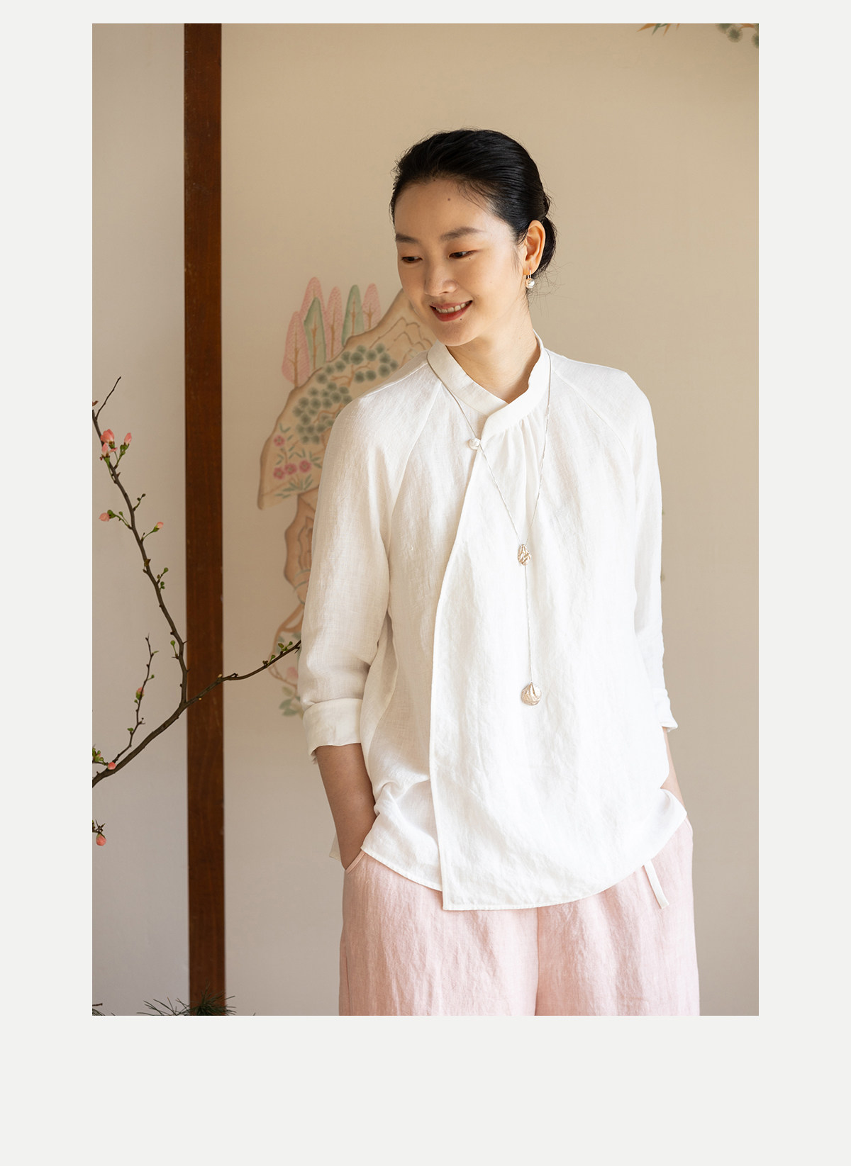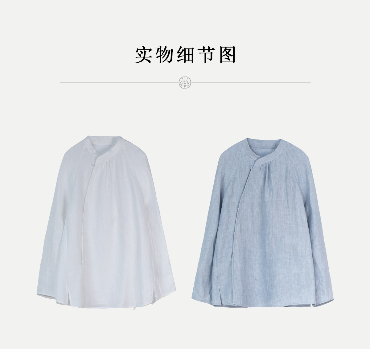 牧衣游原创 汉麻净色衬衫女新款立领斜襟百搭中式衬衣茶服 明月诗