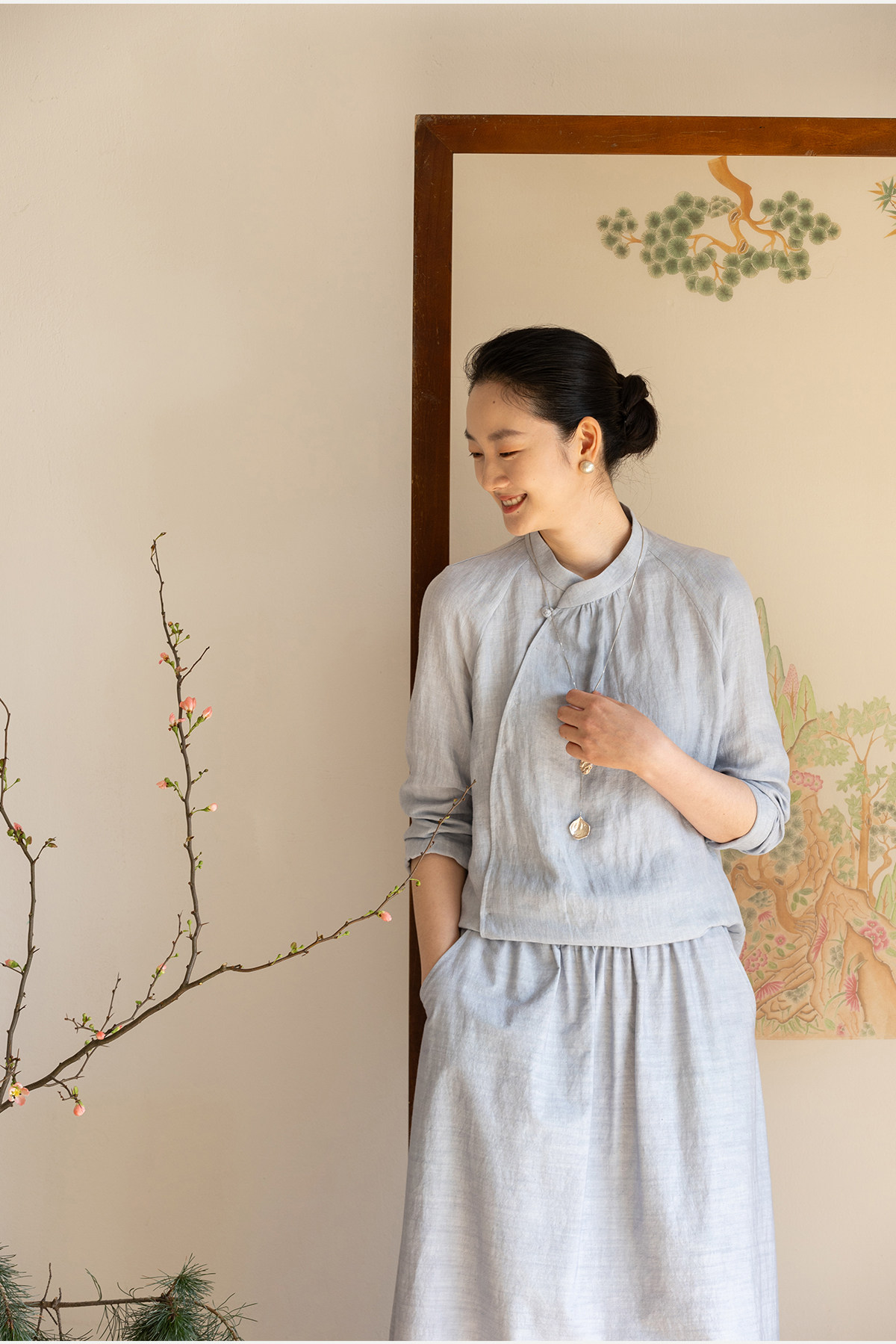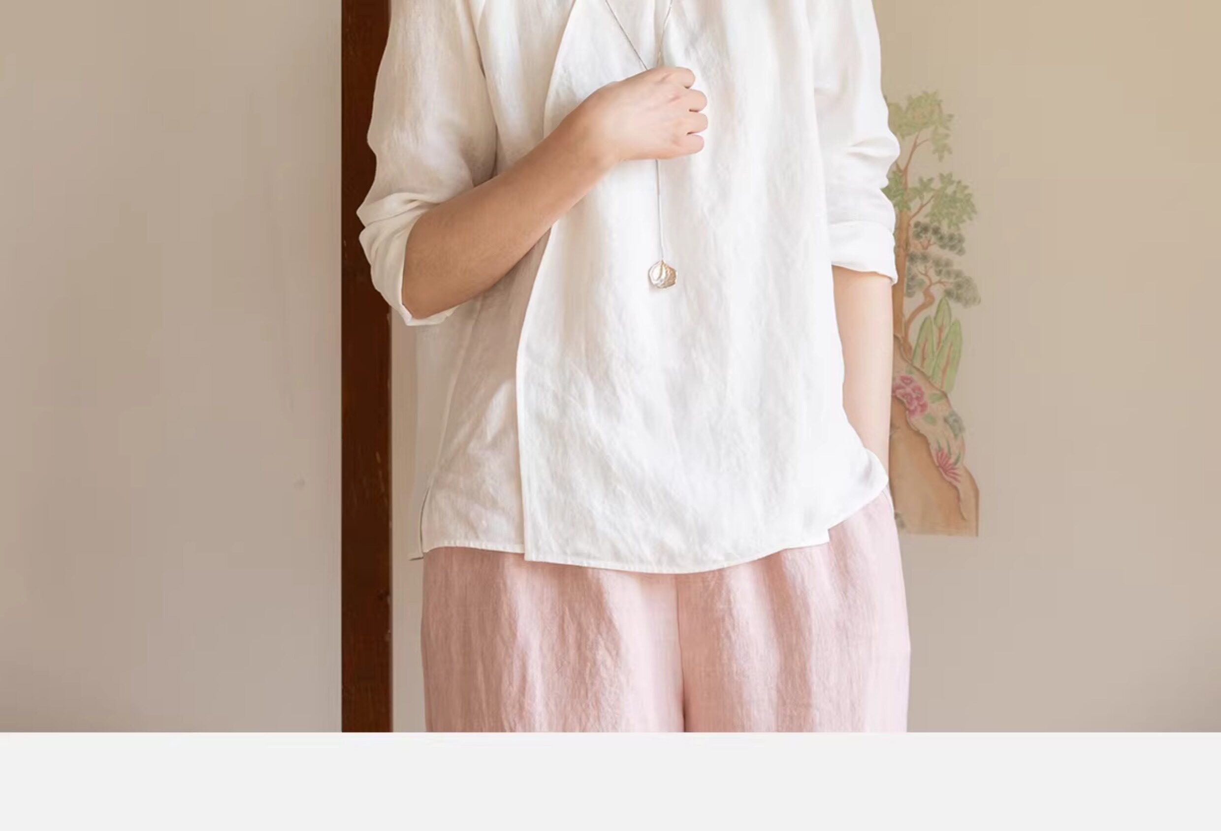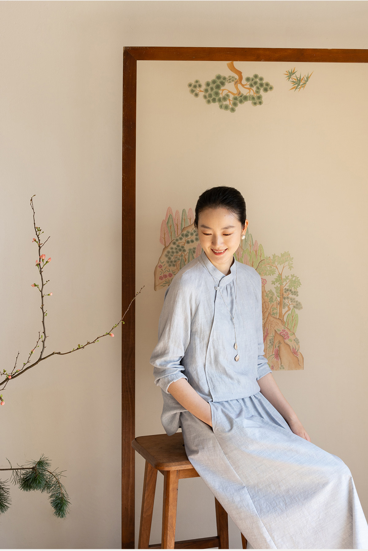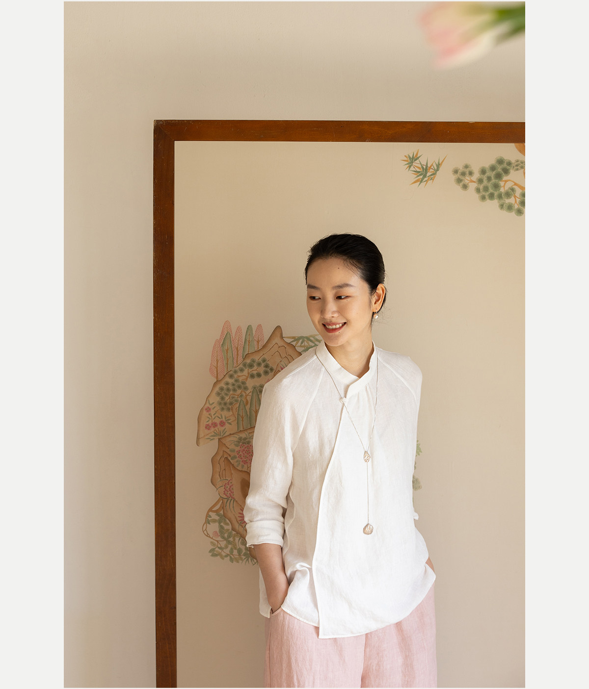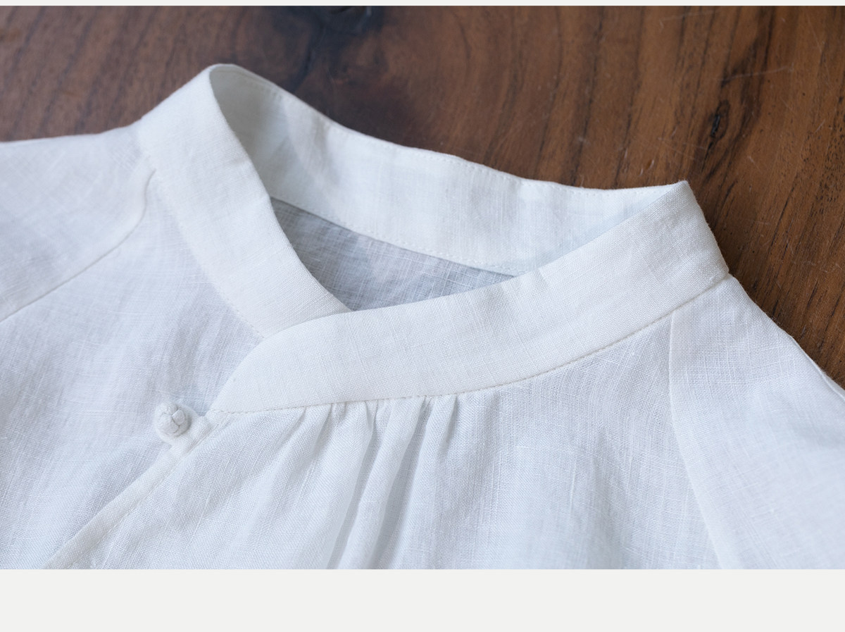 牧衣游原创 汉麻净色衬衫女新款立领斜襟百搭中式衬衣茶服 明月诗