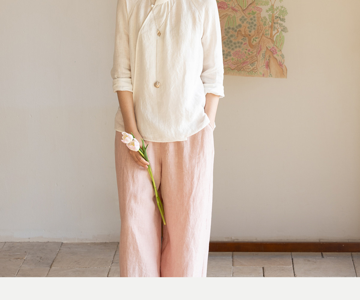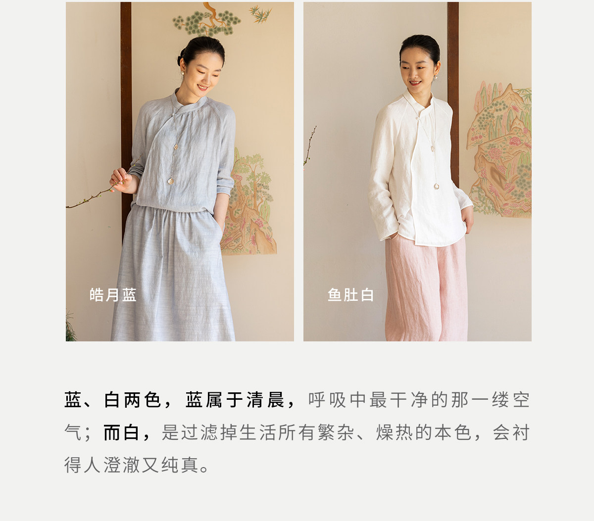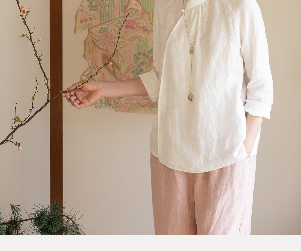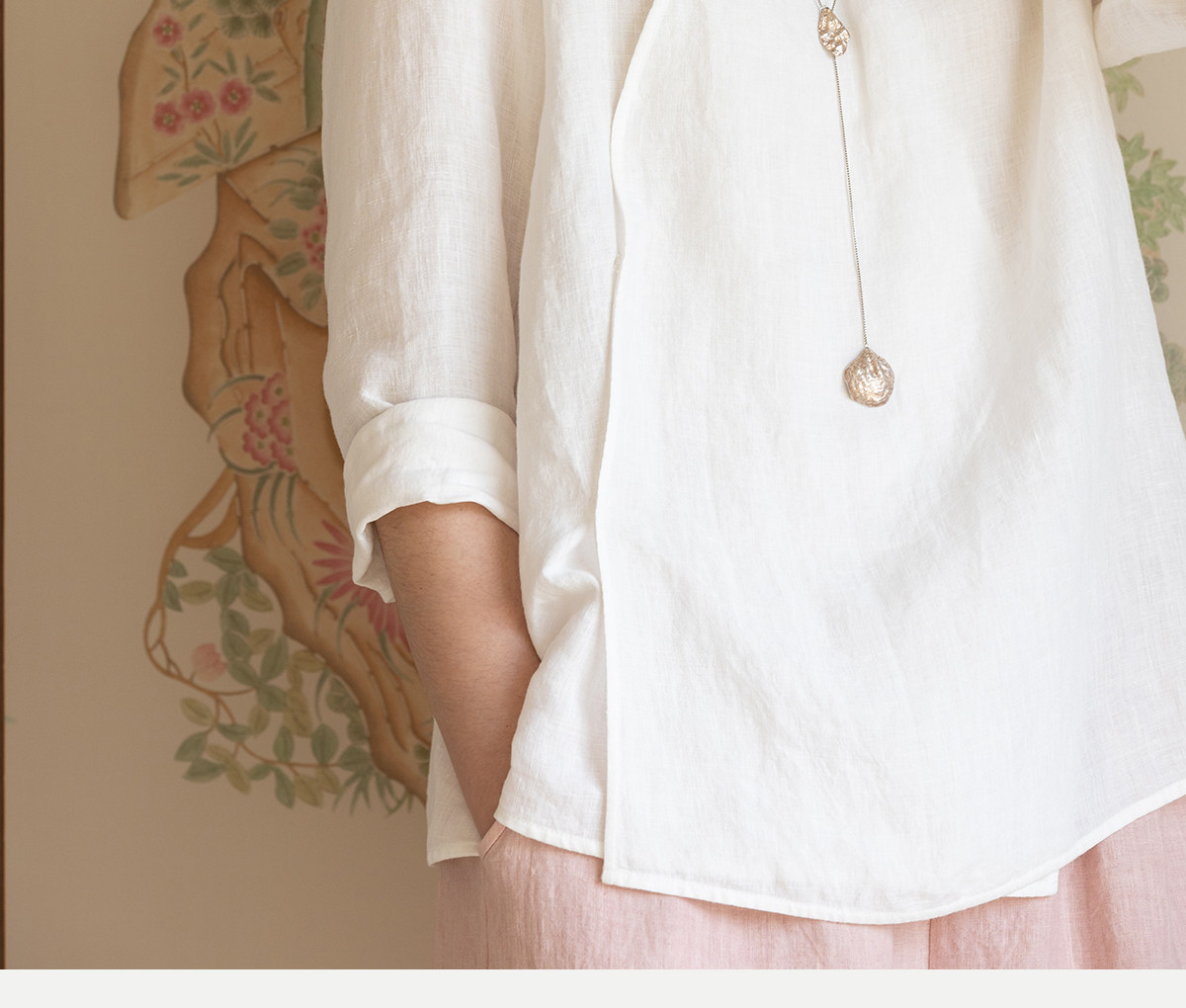 牧衣游原创 汉麻净色衬衫女新款立领斜襟百搭中式衬衣茶服 明月诗