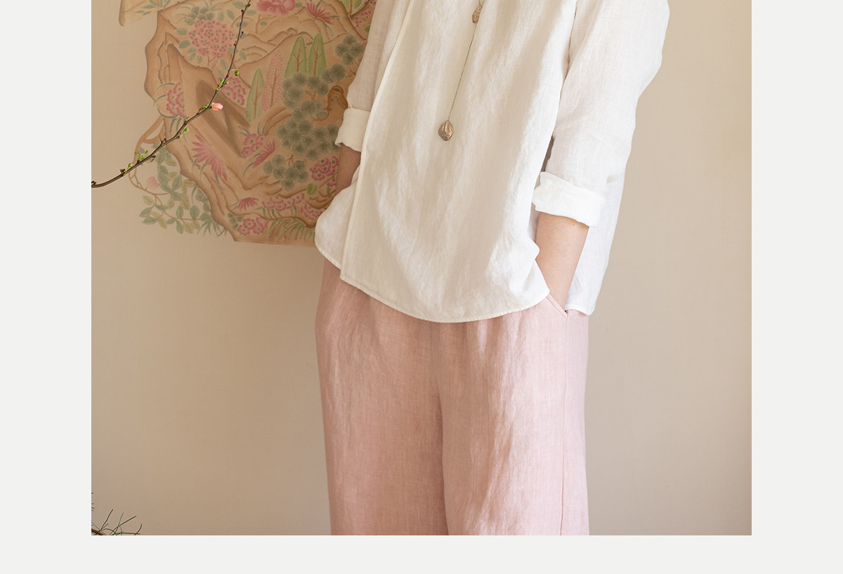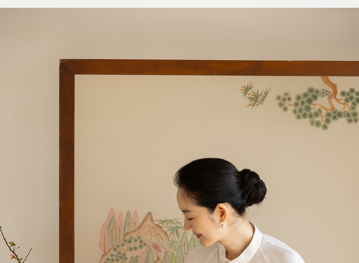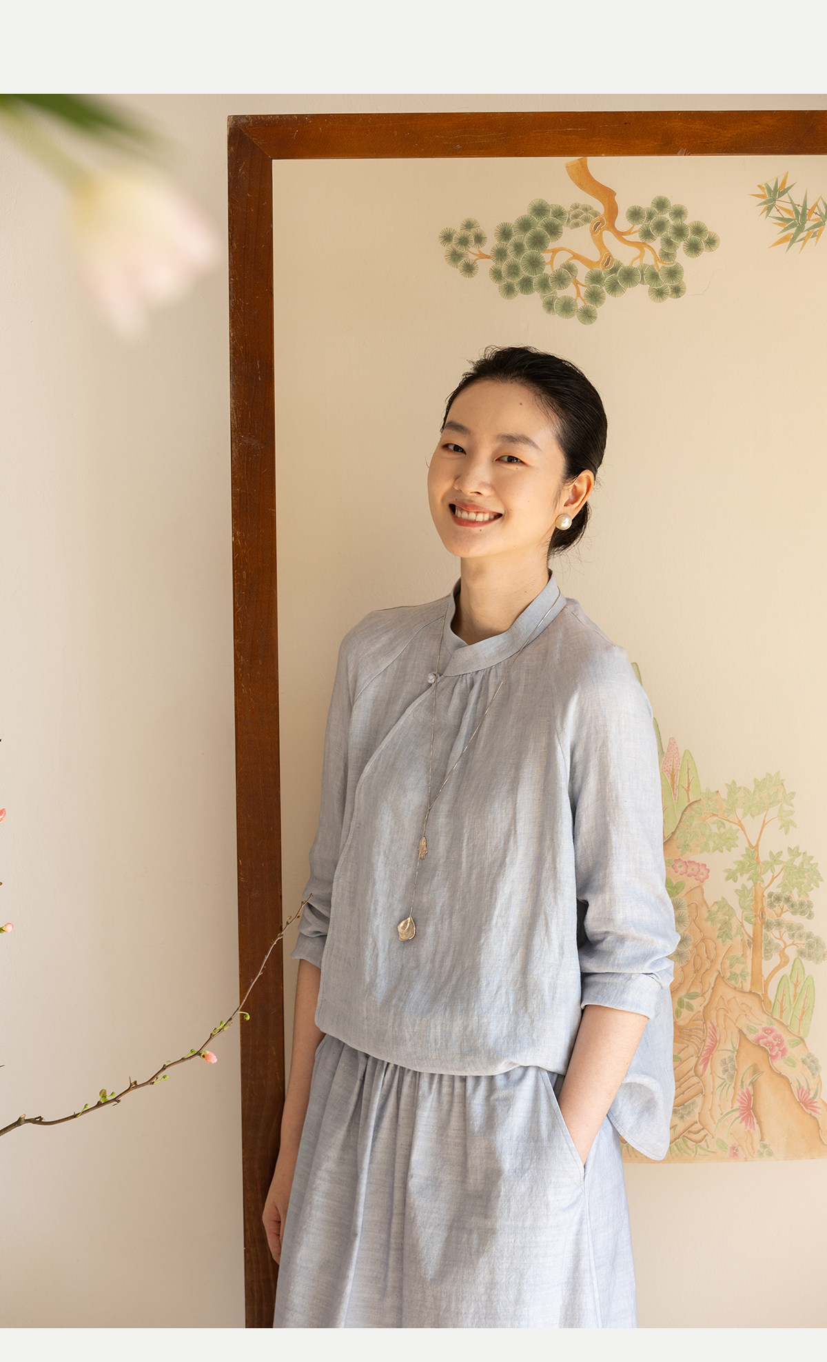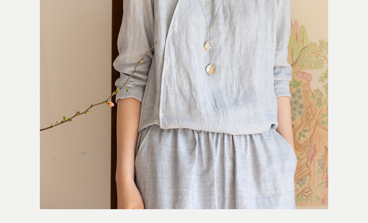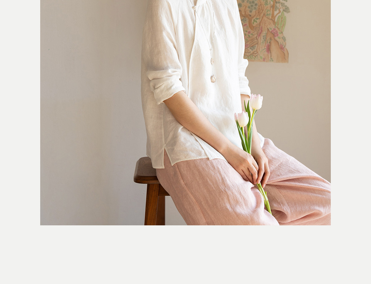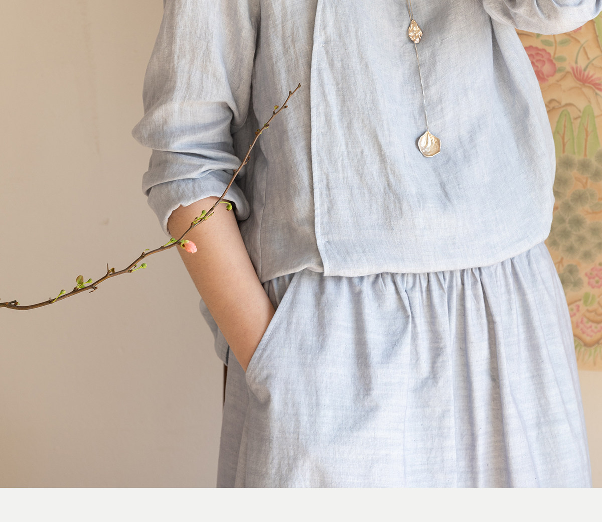 牧衣游原创 汉麻净色衬衫女新款立领斜襟百搭中式衬衣茶服 明月诗