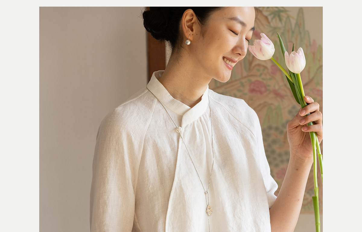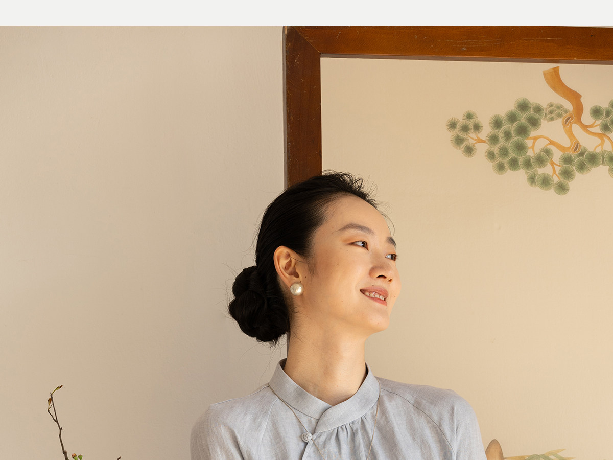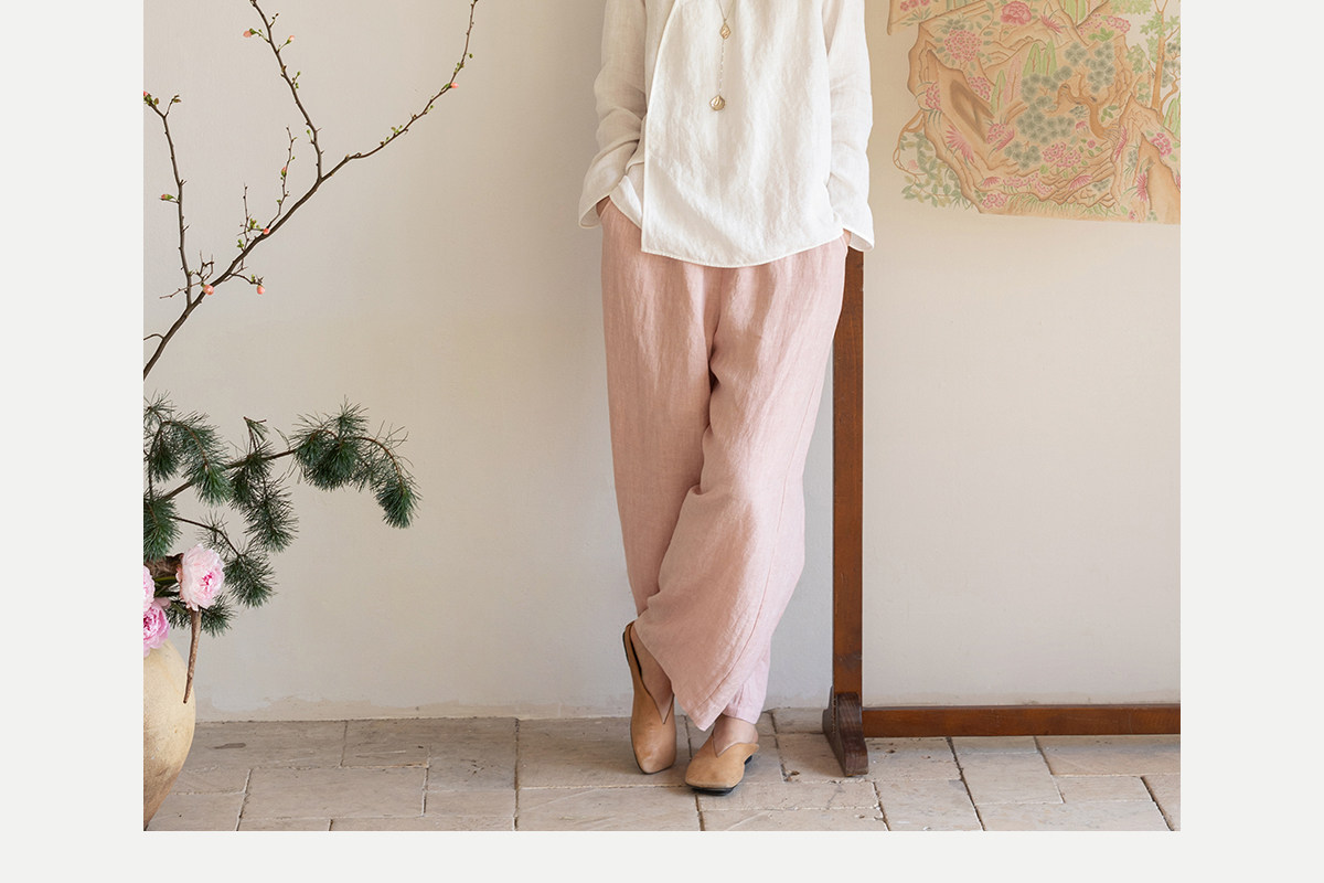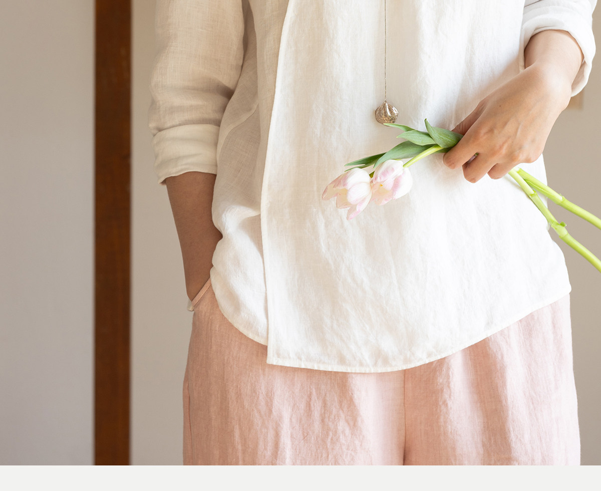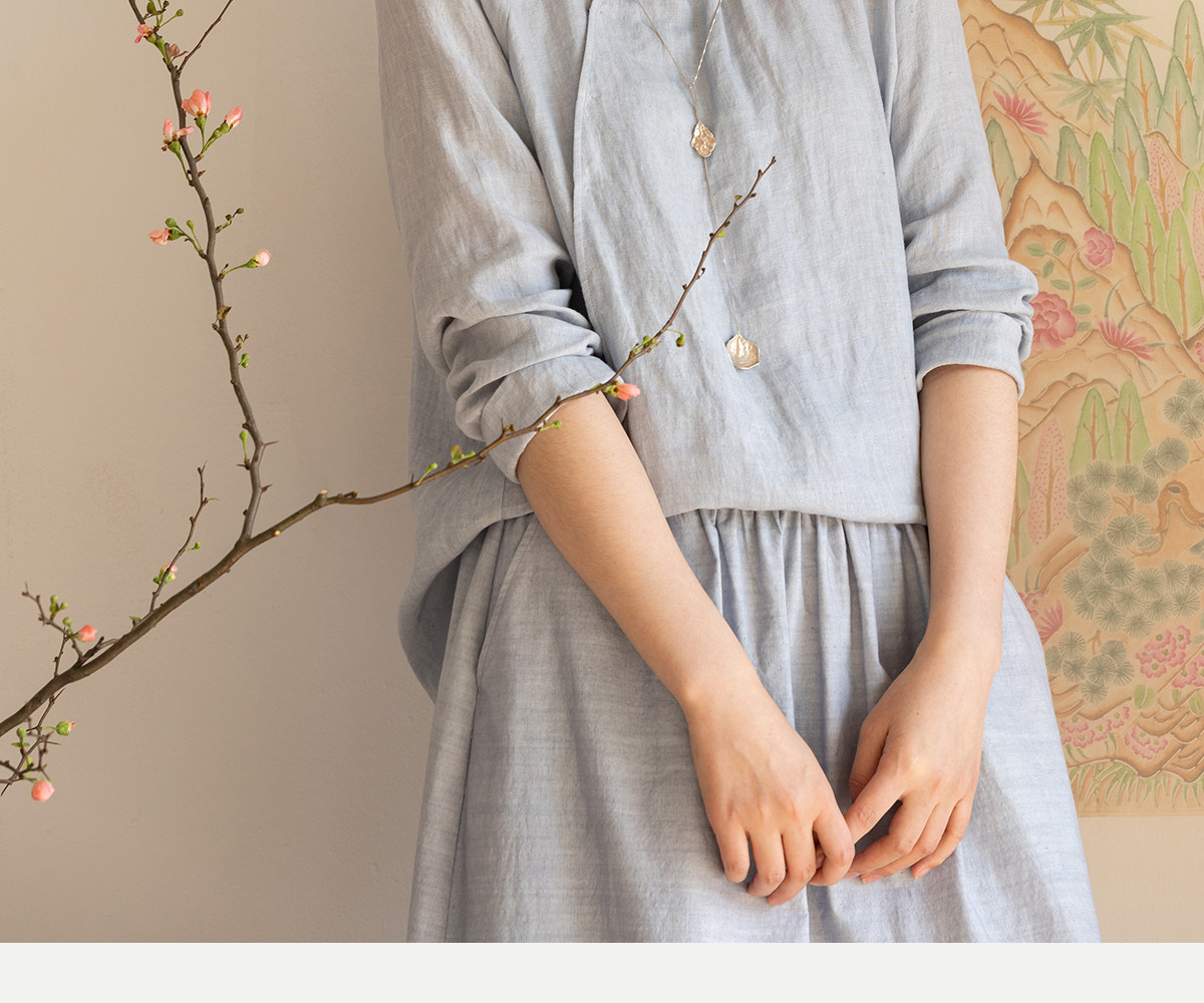 牧衣游原创 汉麻净色衬衫女新款立领斜襟百搭中式衬衣茶服 明月诗