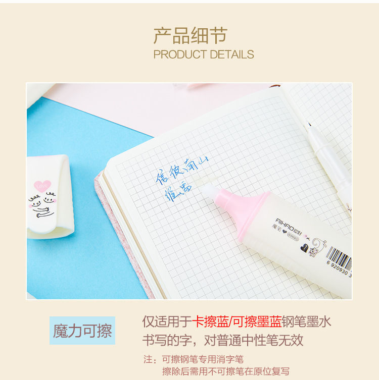 【福利】爱好可擦魔笔消字笔魔笔可擦纯蓝墨水钢笔擦大容量褪色笔安全环保可擦消除笔