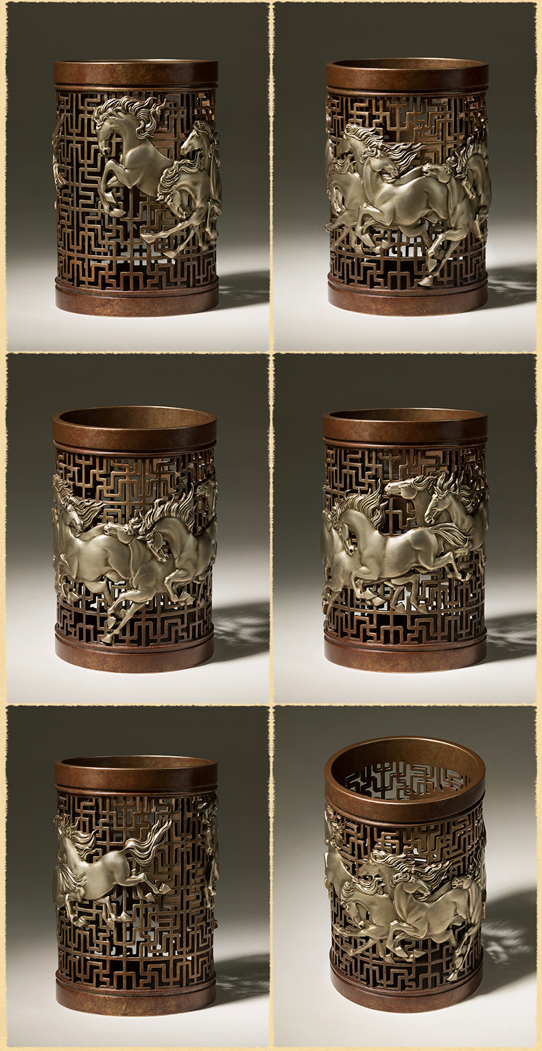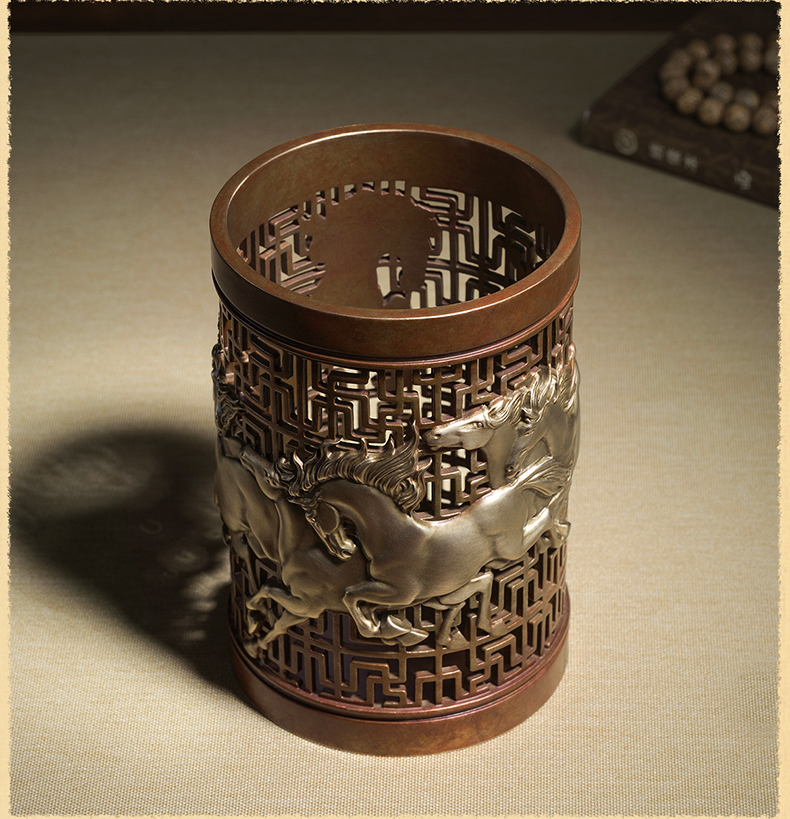 铜师傅《八骏笔筒》书房客厅铜摆件 家居工艺品 老师礼物