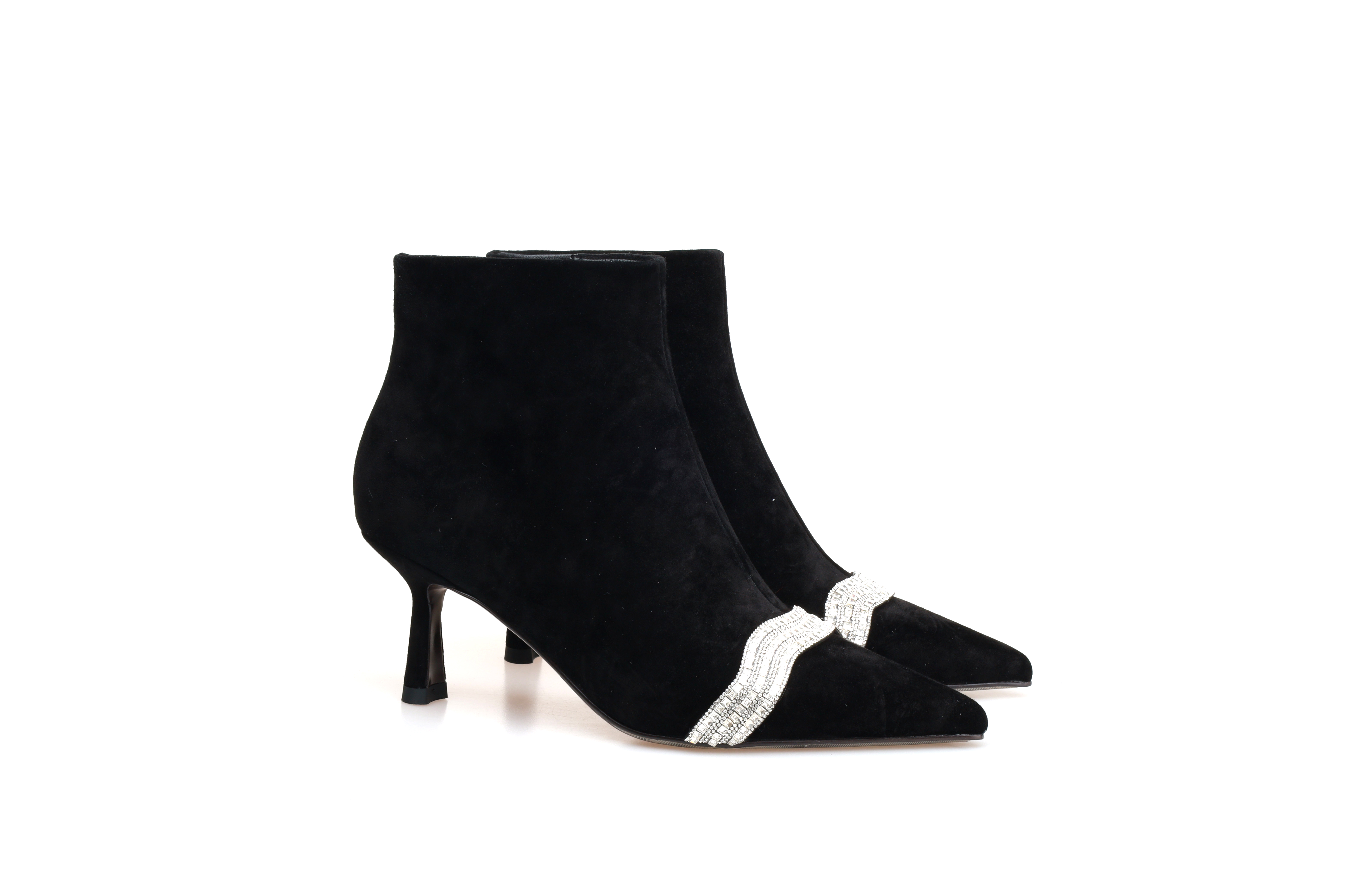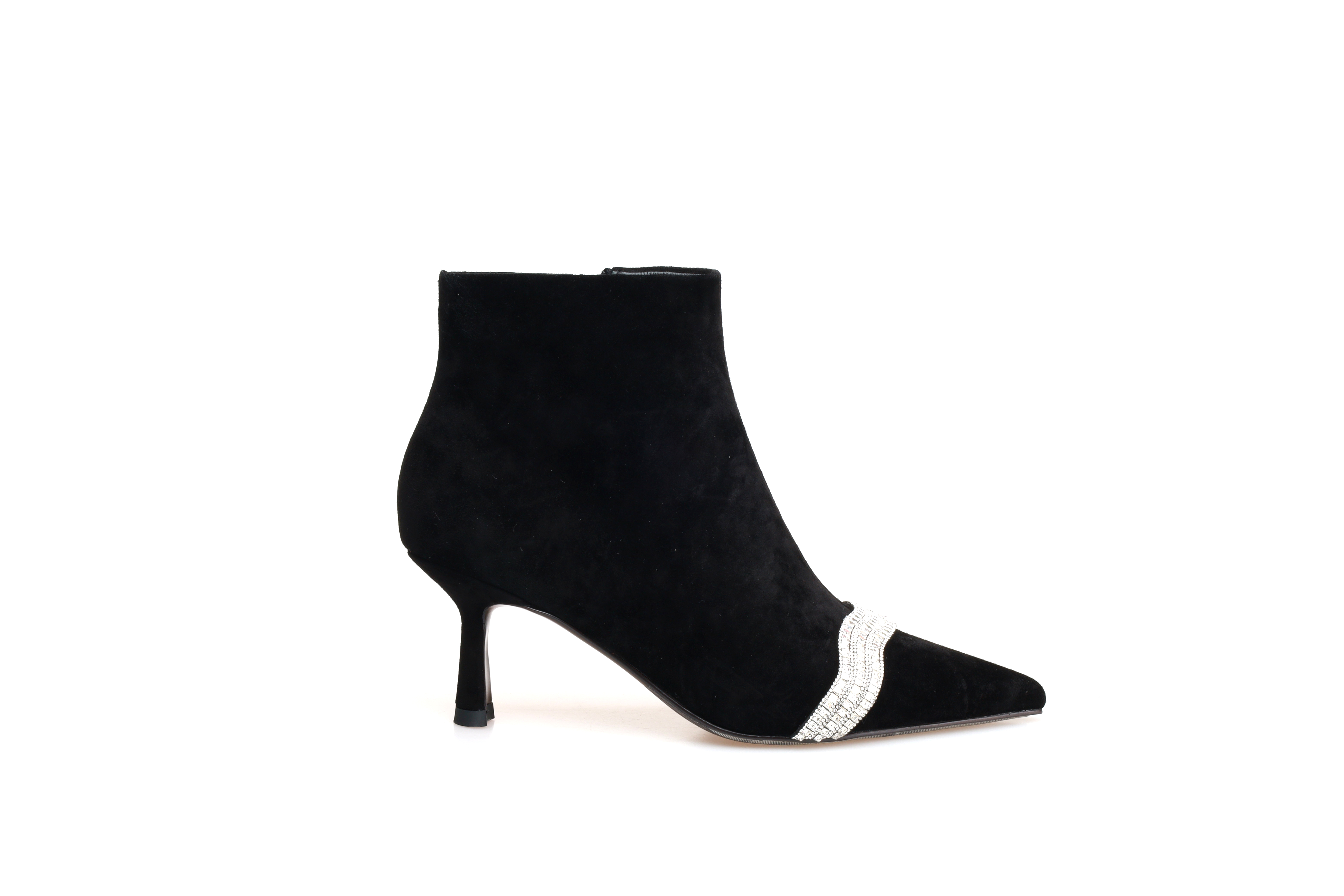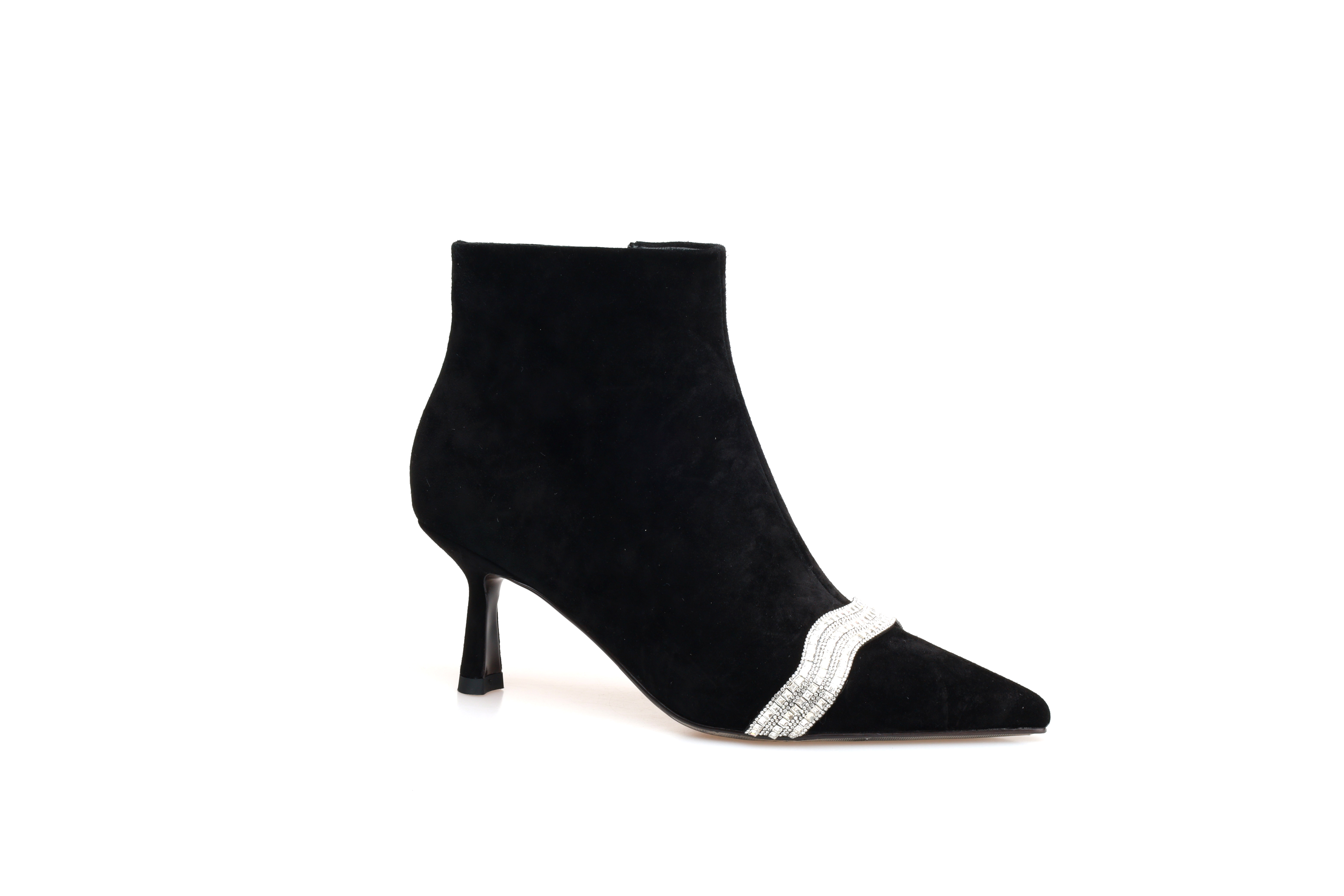 豪麟名鞋迪嘉女鞋羊反绒面革短靴DJYYA52WN004黑色