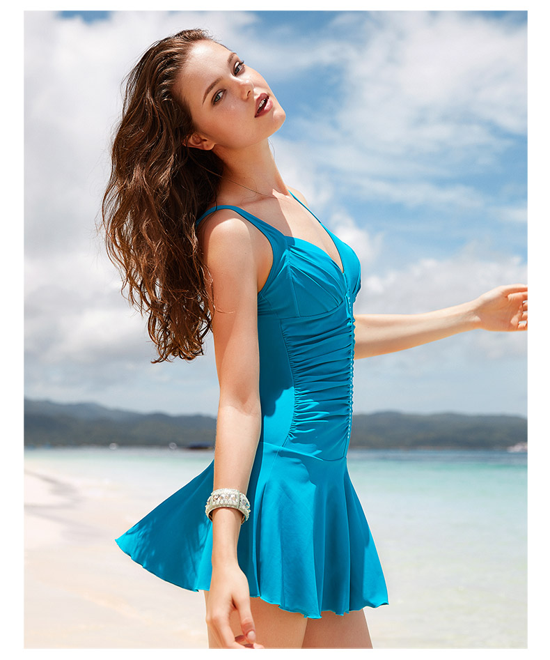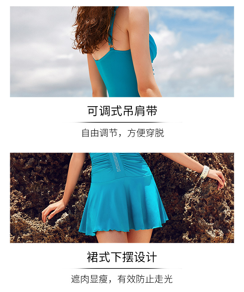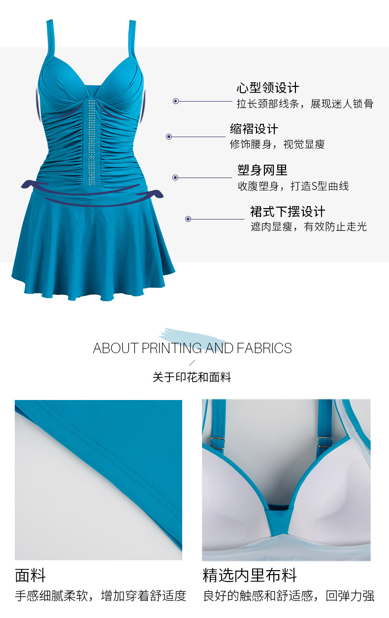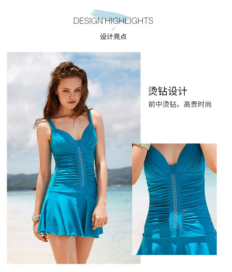 | 袖长: 无袖 | 款式: 裙式连体泳衣 |