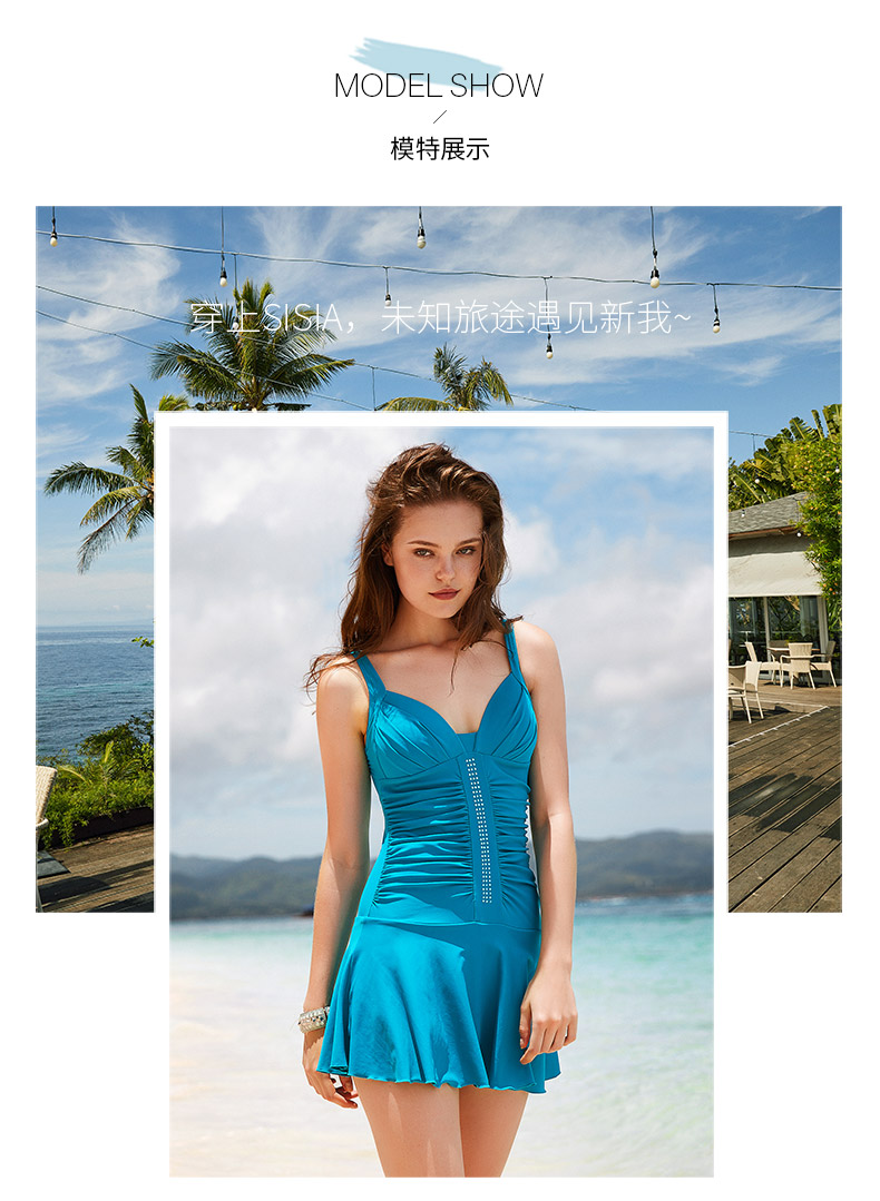sisia游泳衣女保守显瘦遮肚连体裙式平角温泉 仲夏梦之夜SS182W02S8a