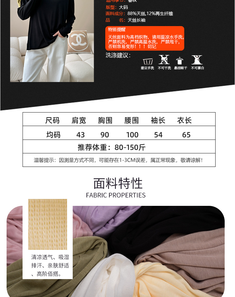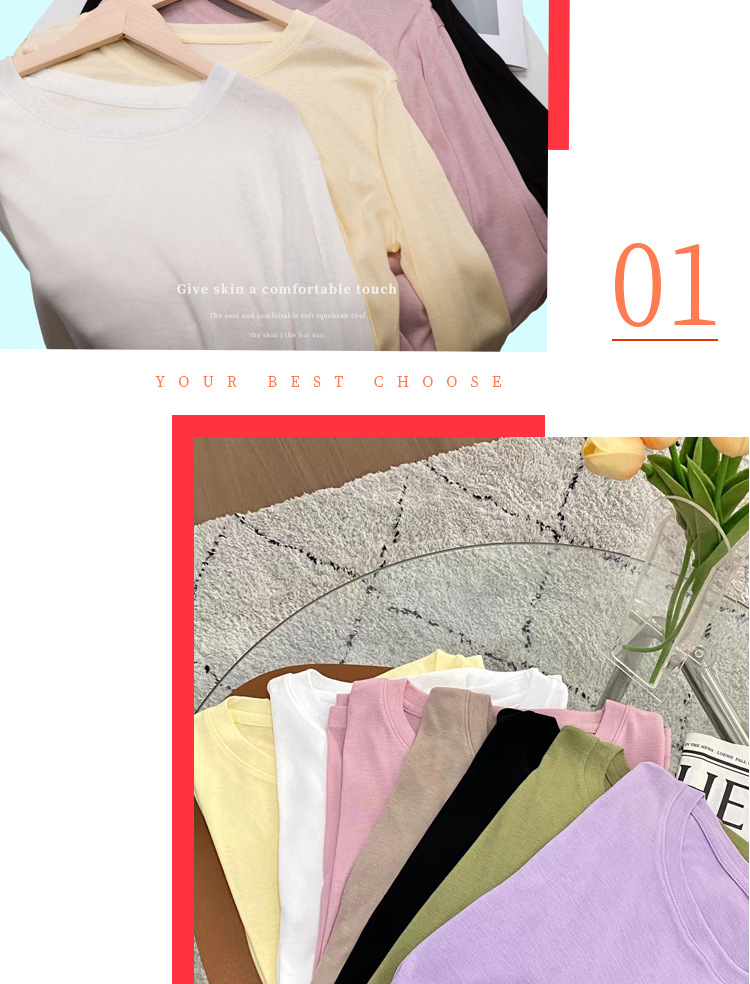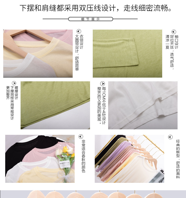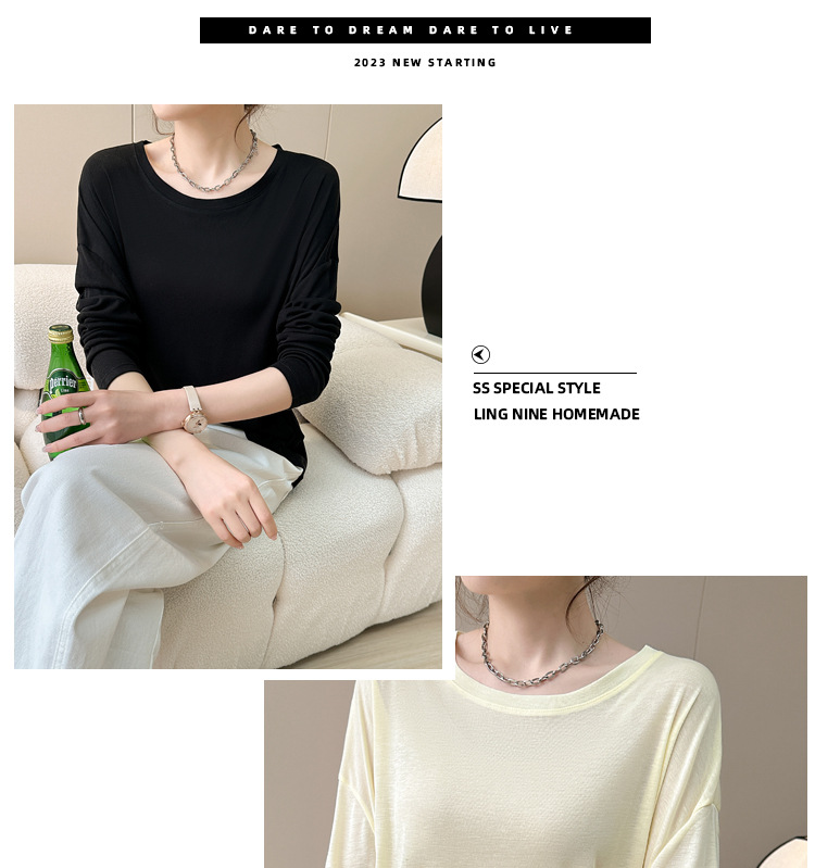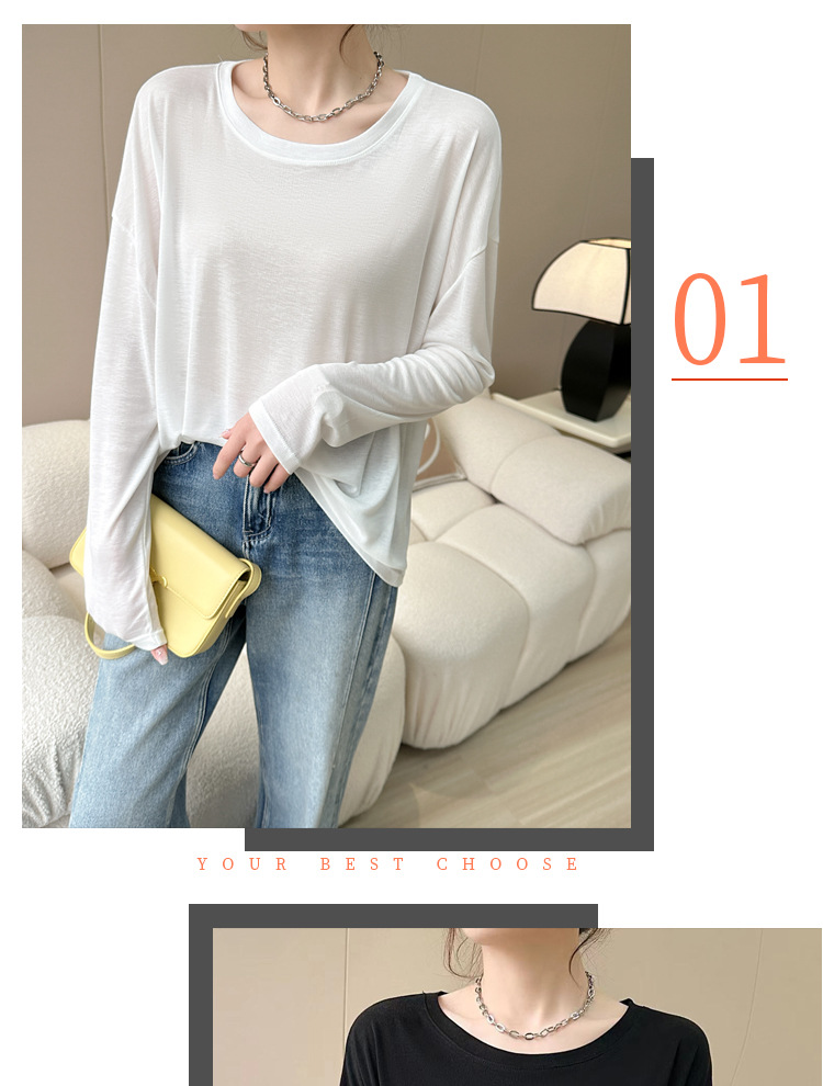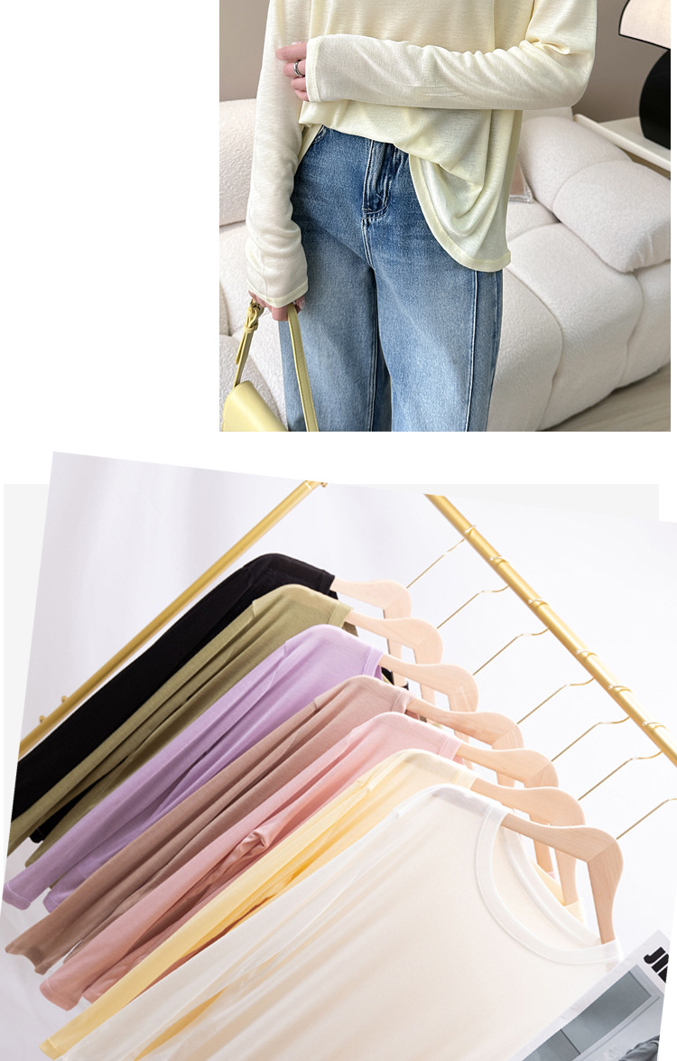 「买1送1!到手两件」莱尔赛天丝打底衫女圆领韩版薄修身长袖春夏防晒衣上衣