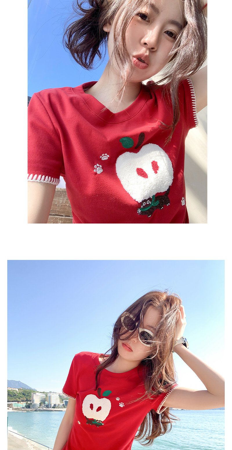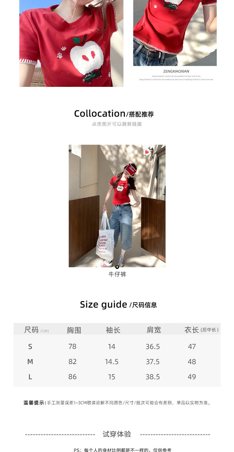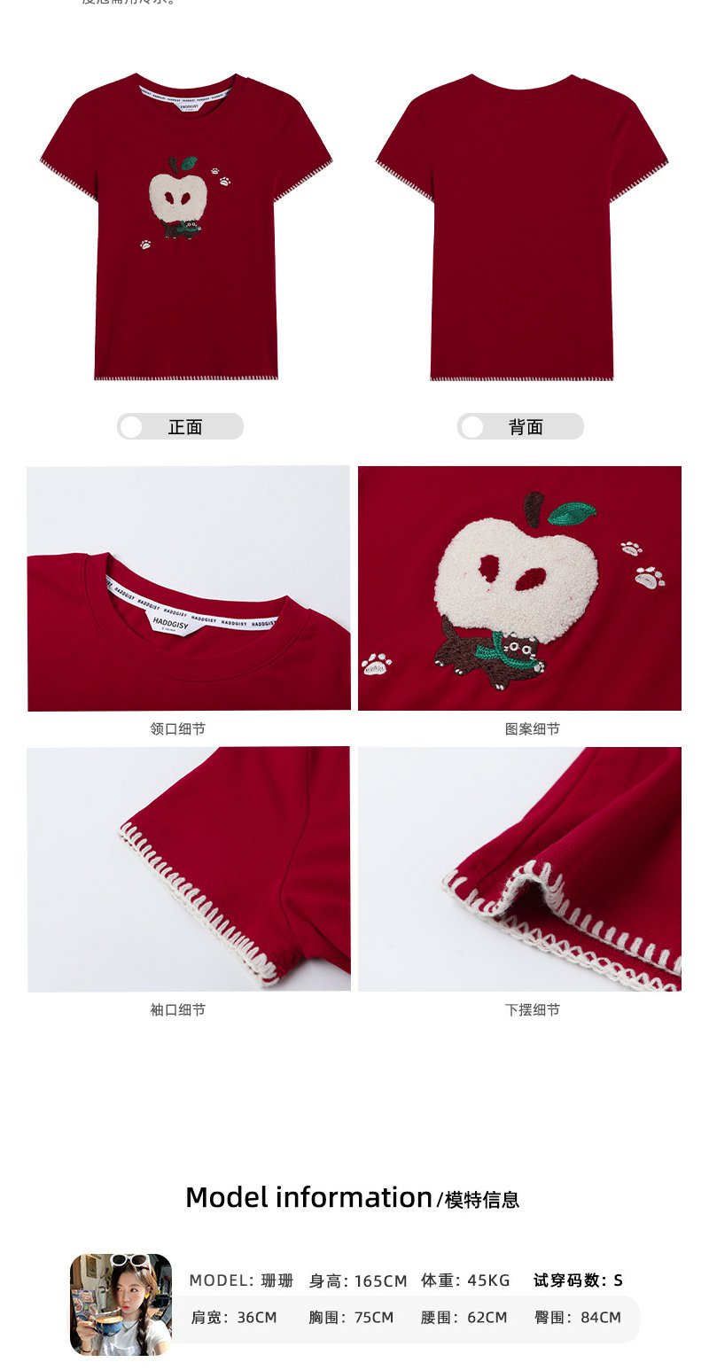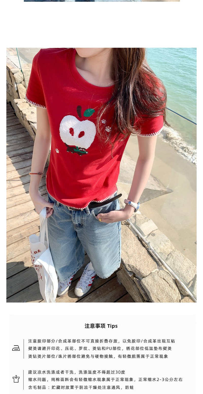 <曾小咸推荐>红色苹果植绒短袖t袖夏上衣