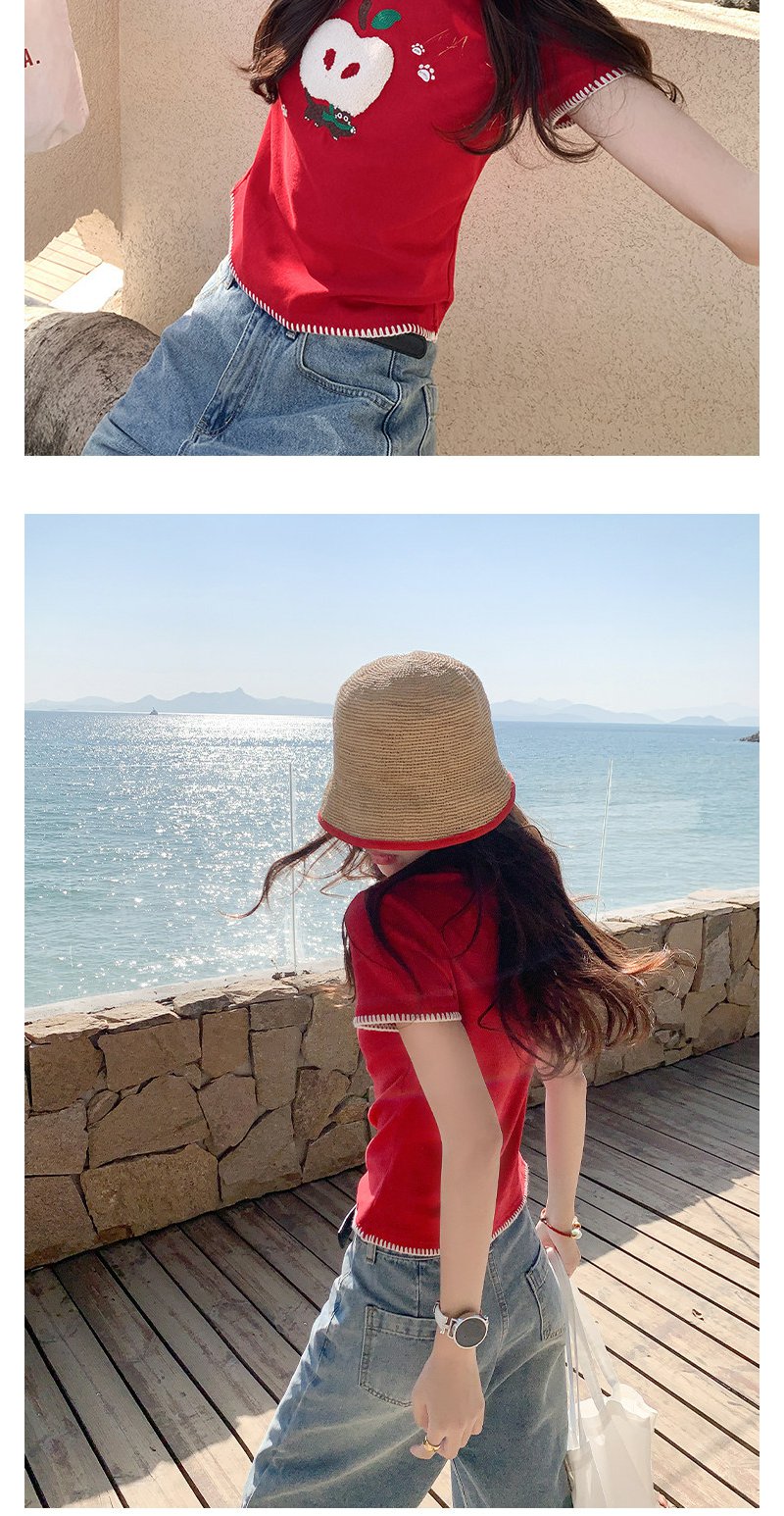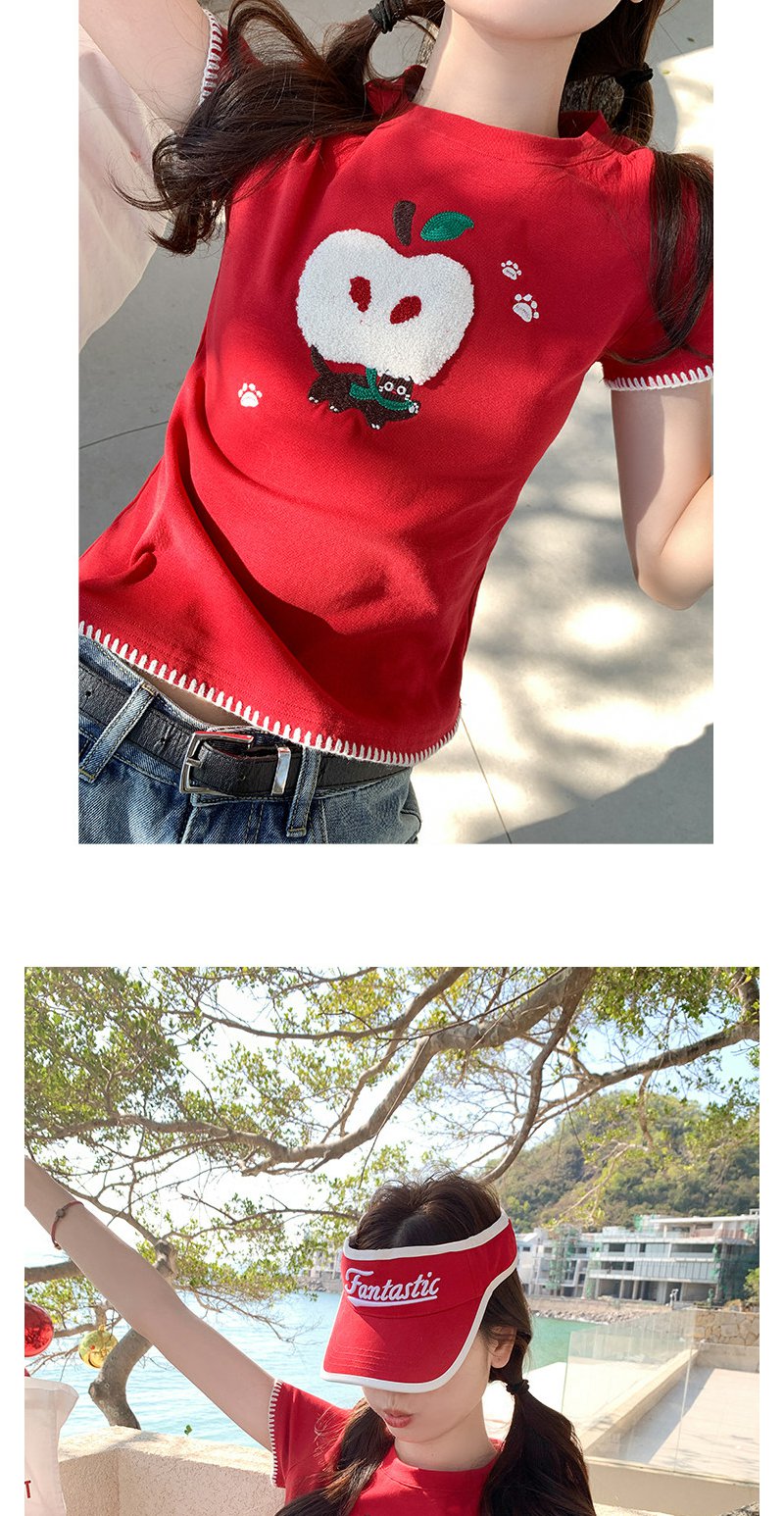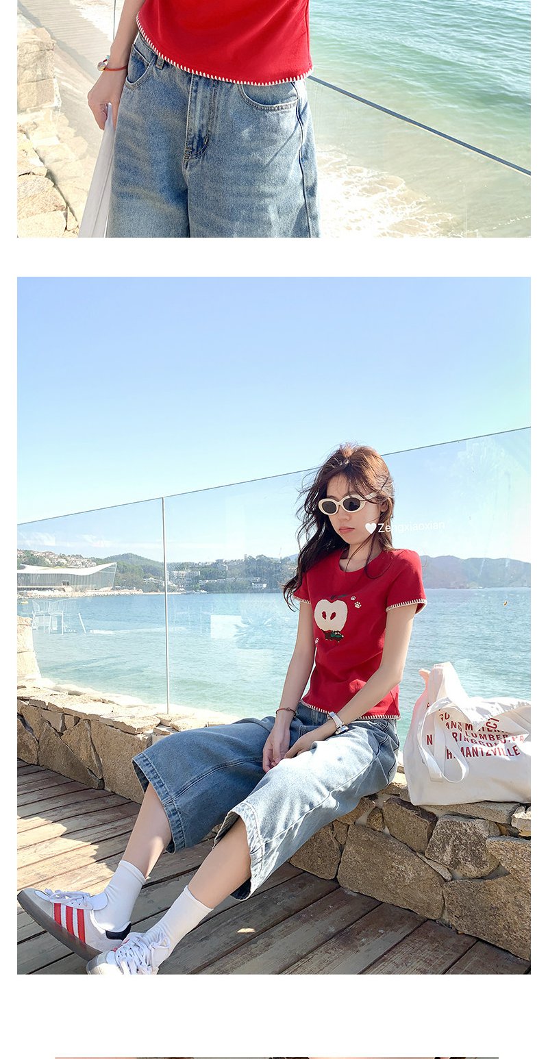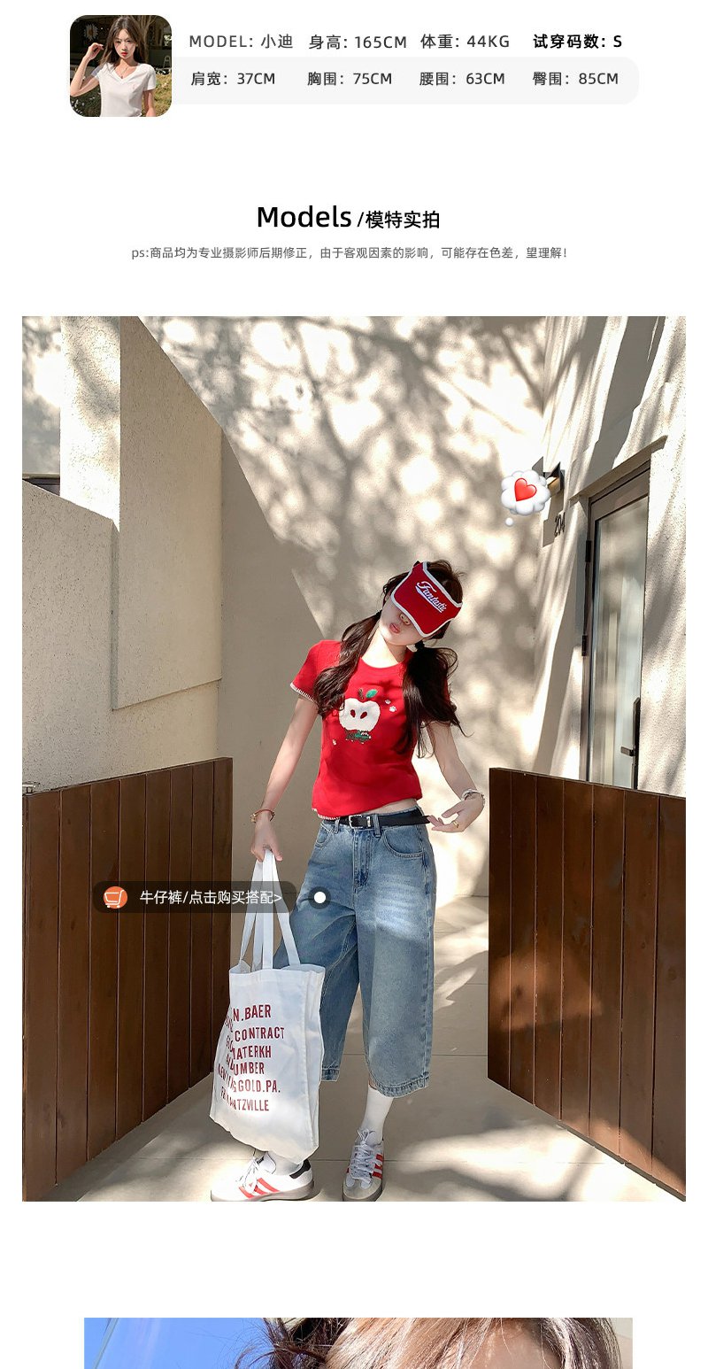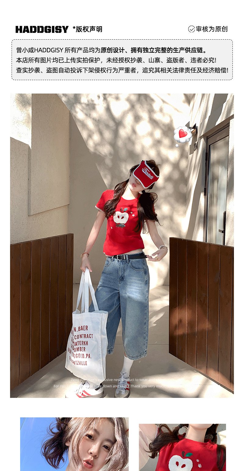 <曾小咸推荐>红色苹果植绒短袖t袖夏上衣
