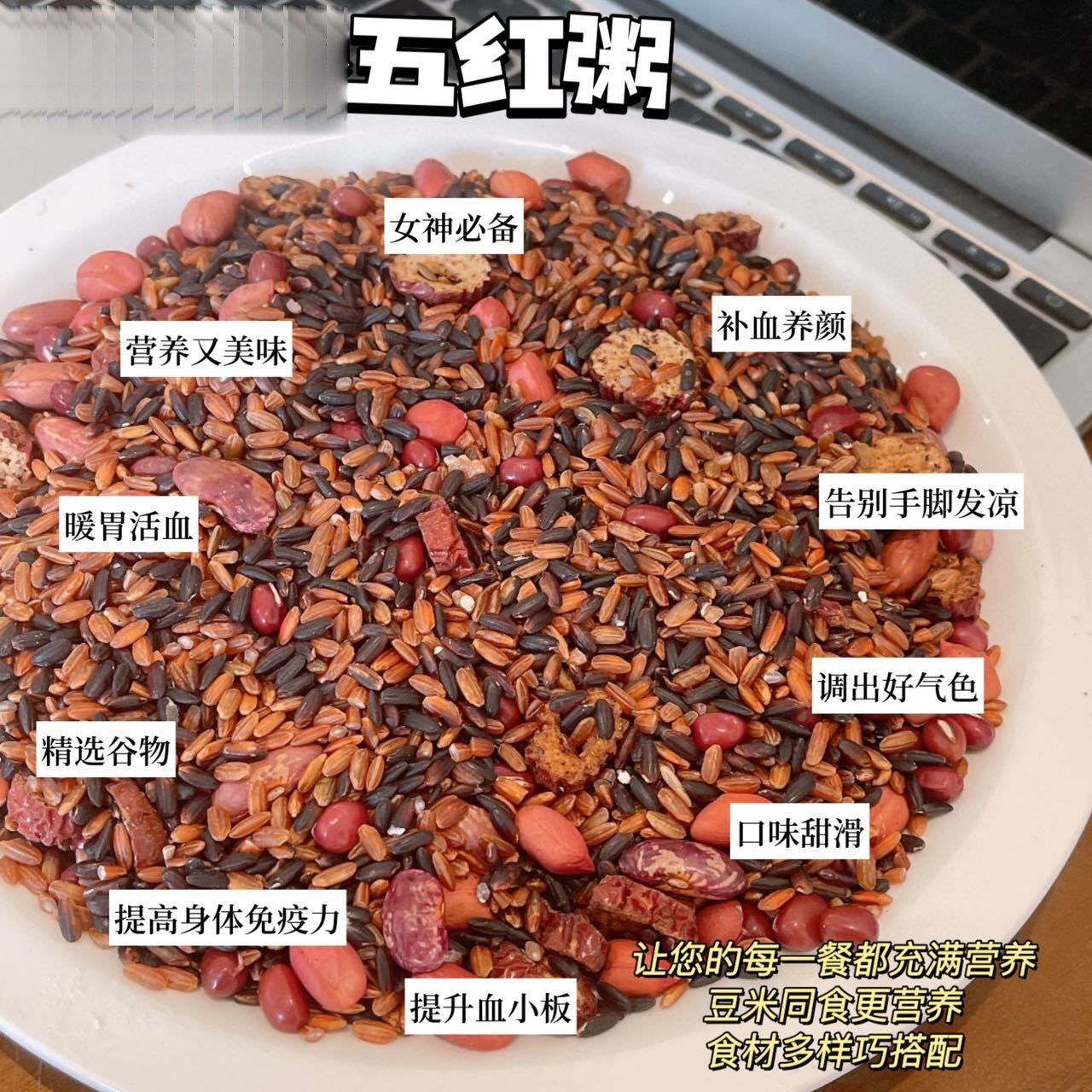 1、五红粥具有补气养血、美容养颜等功效和作用。