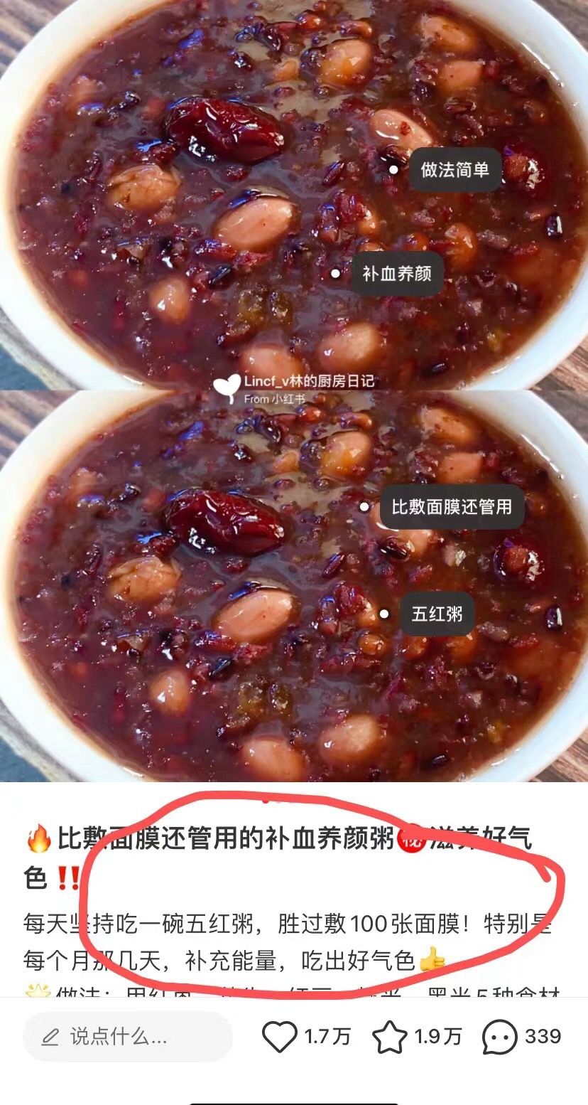 五红粥,这个食疗美颜粥是养生人的最爱,也是我皮肤好好的法宝之一。