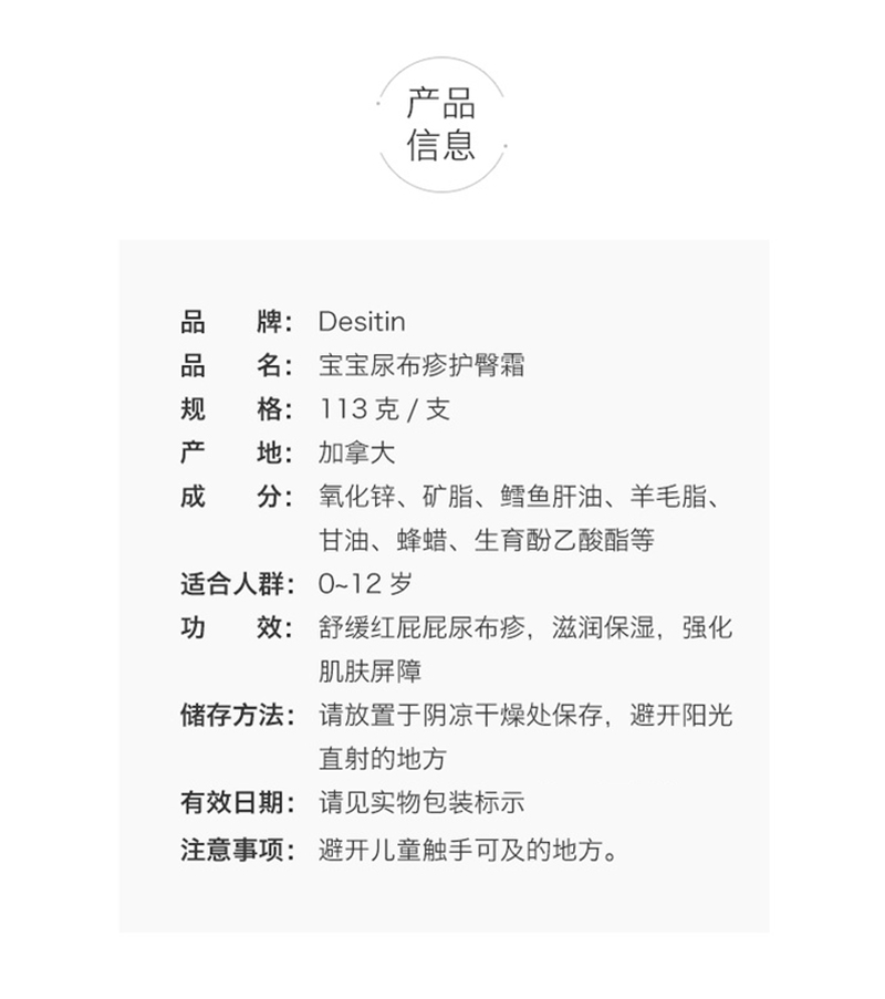 美国Desitin 新生儿预防型护臀膏