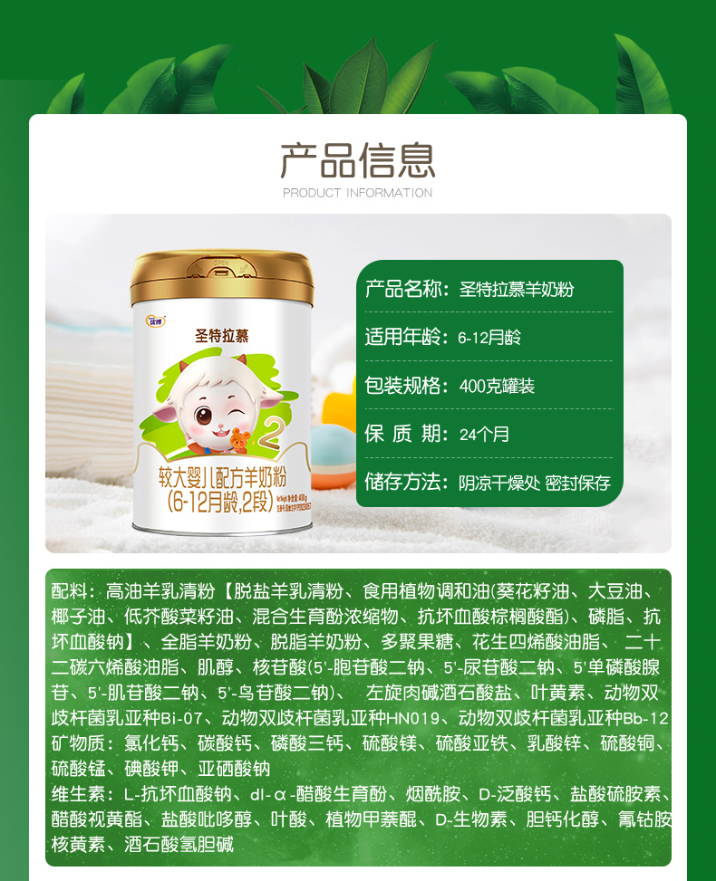【新客送150g】圣特拉慕羊奶粉2段400g 荷兰奶源