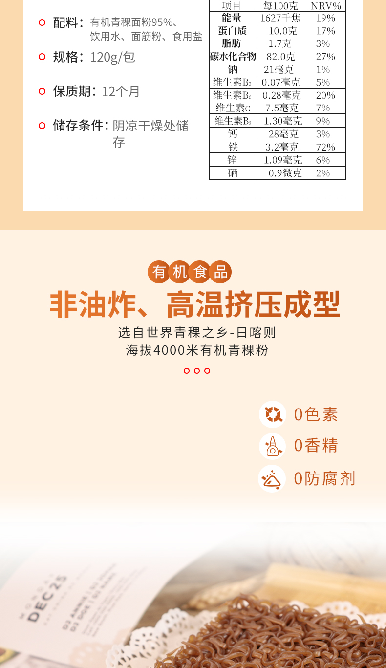 有机素鲜青稞面 方便面速食面非油炸粗粮面 120g/包【京东快递送货上门】