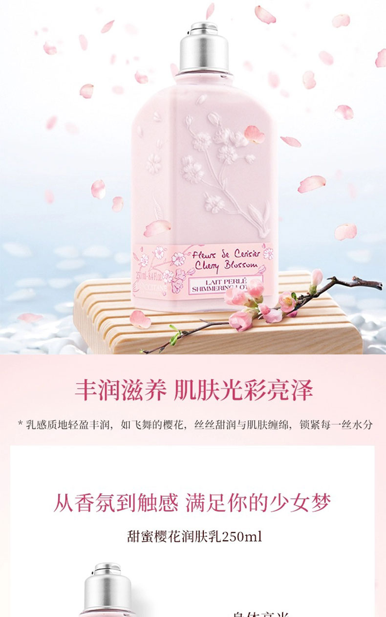 1,欧舒丹甜蜜樱花香氛亮采润肤露250ml