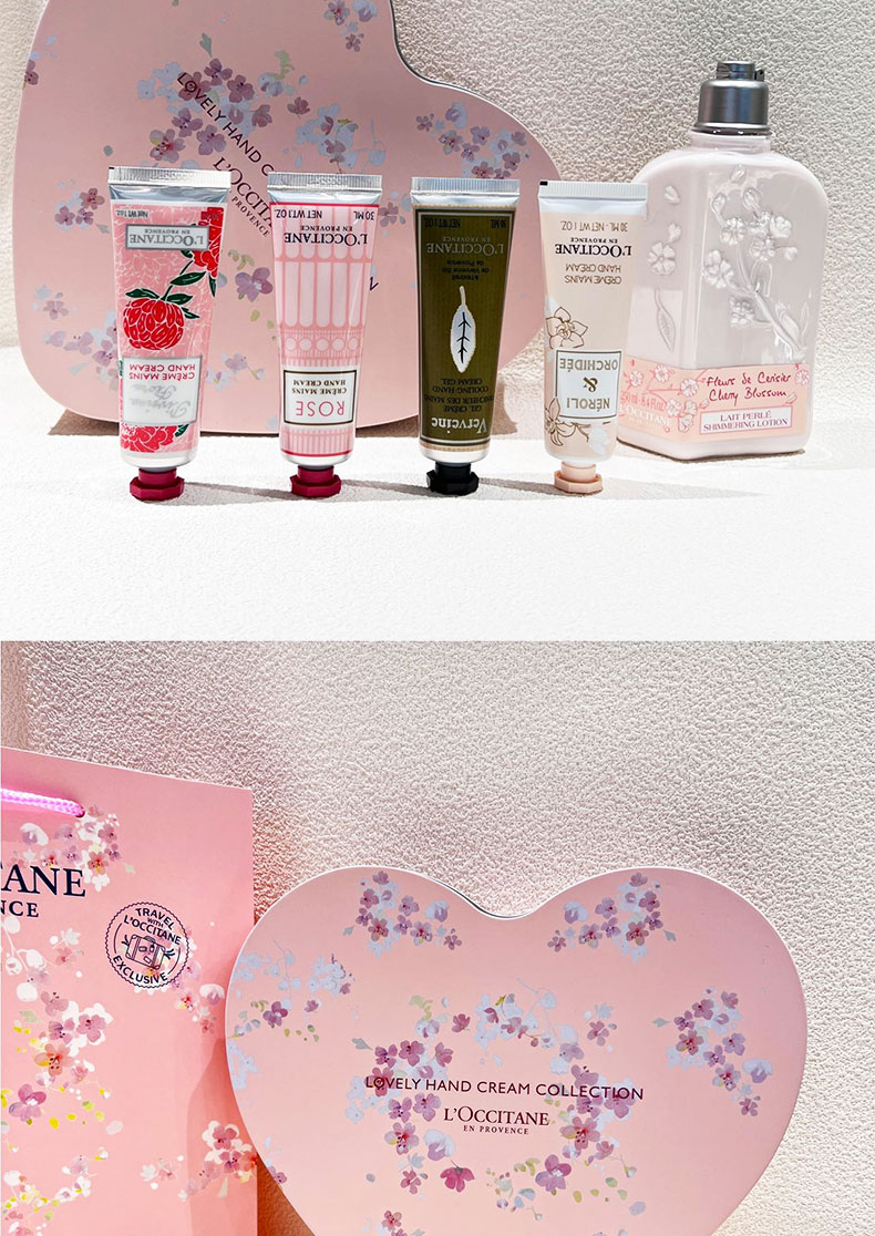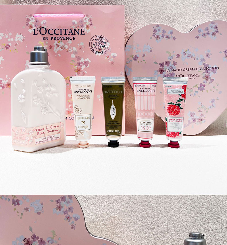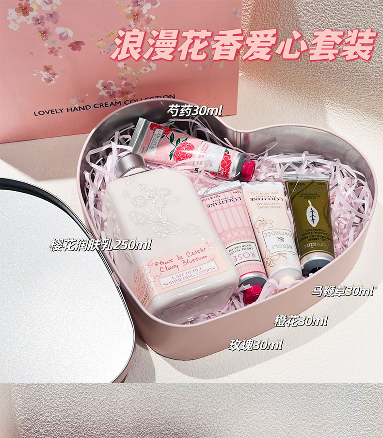 【配礼盒礼袋】欧舒丹花香修护爱心套装(樱花润肤乳250ml+玫瑰30ml+橙花30ml+芍药30ml+马鞭草30ml)一般贸易