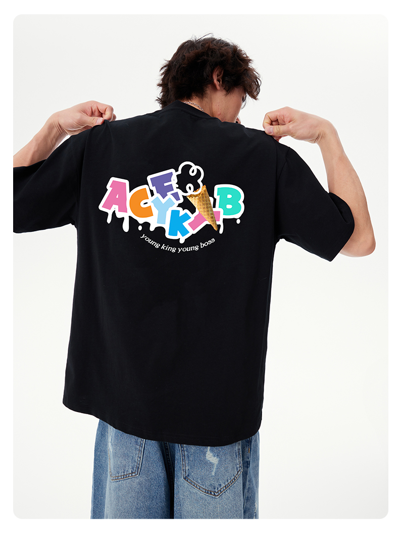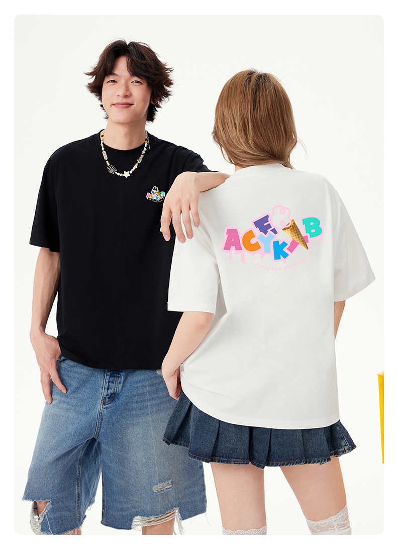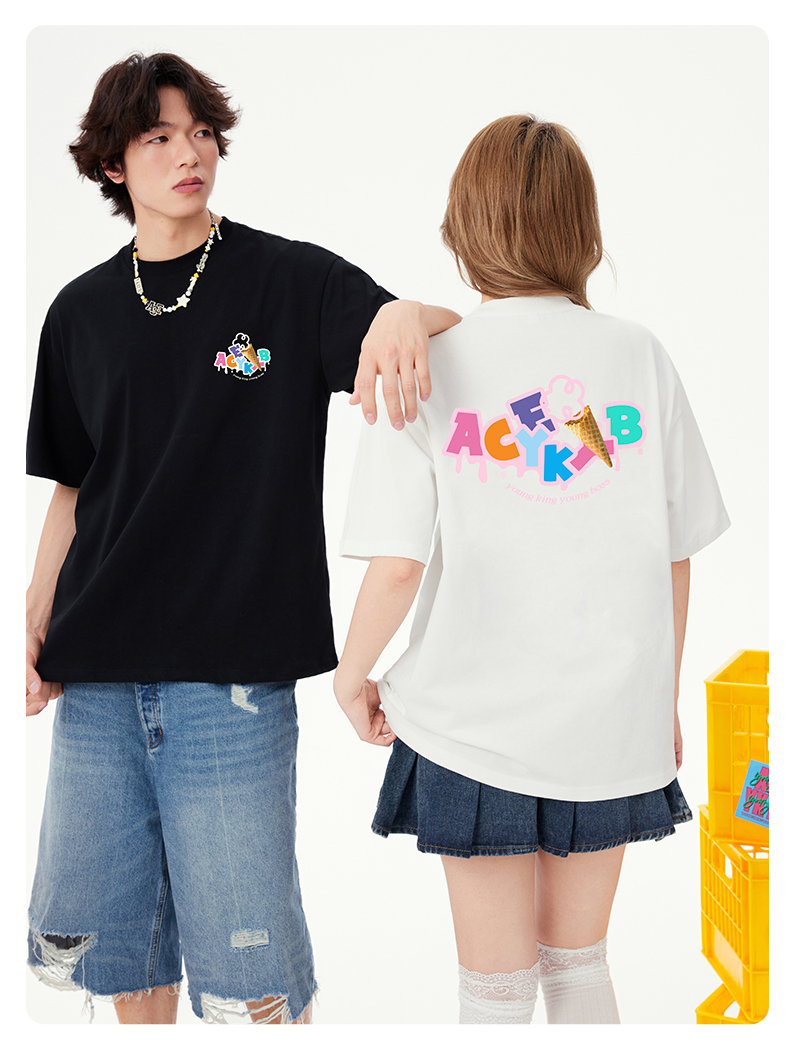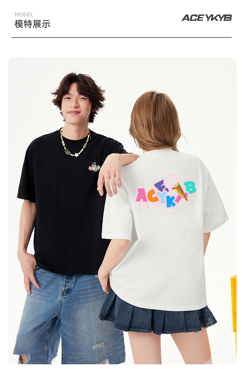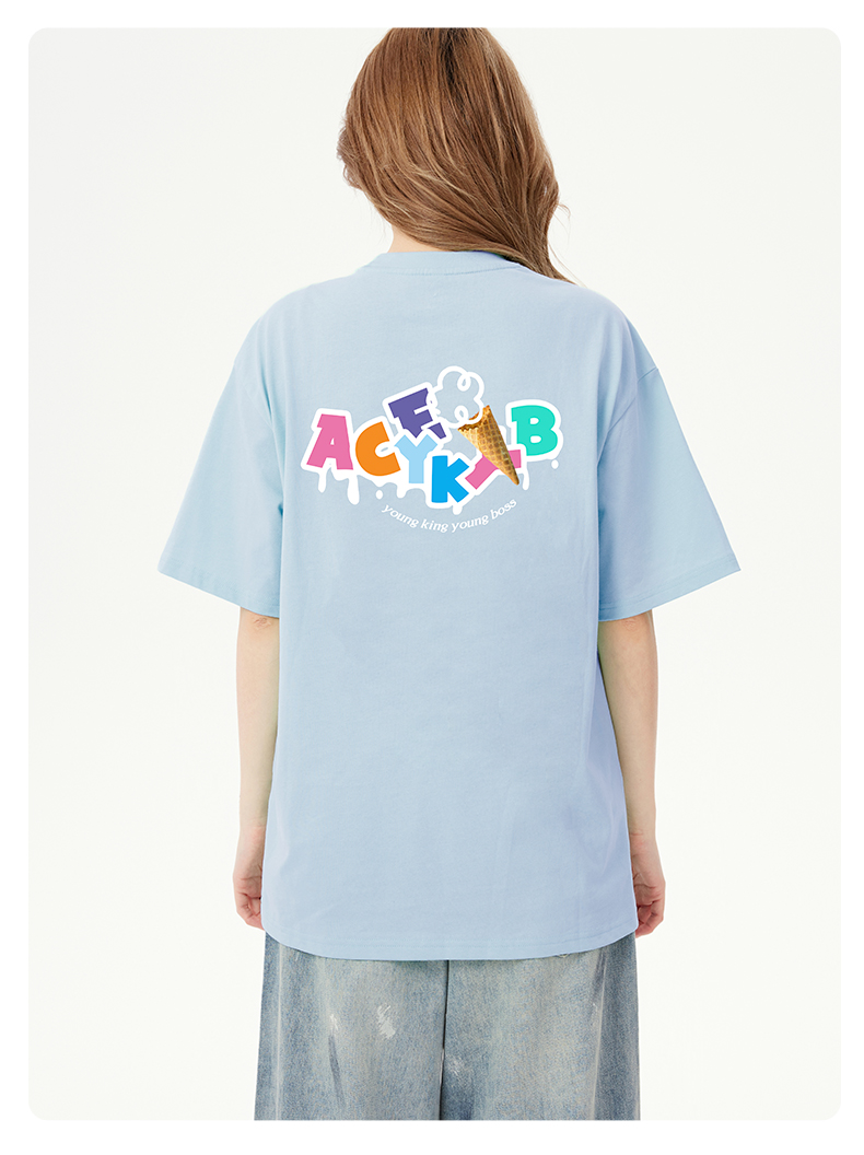 YKYB黄子韬短袖T恤柔软肤透气落肩宽松慵懒风冰淇淋云朵上衣Y52NDT101