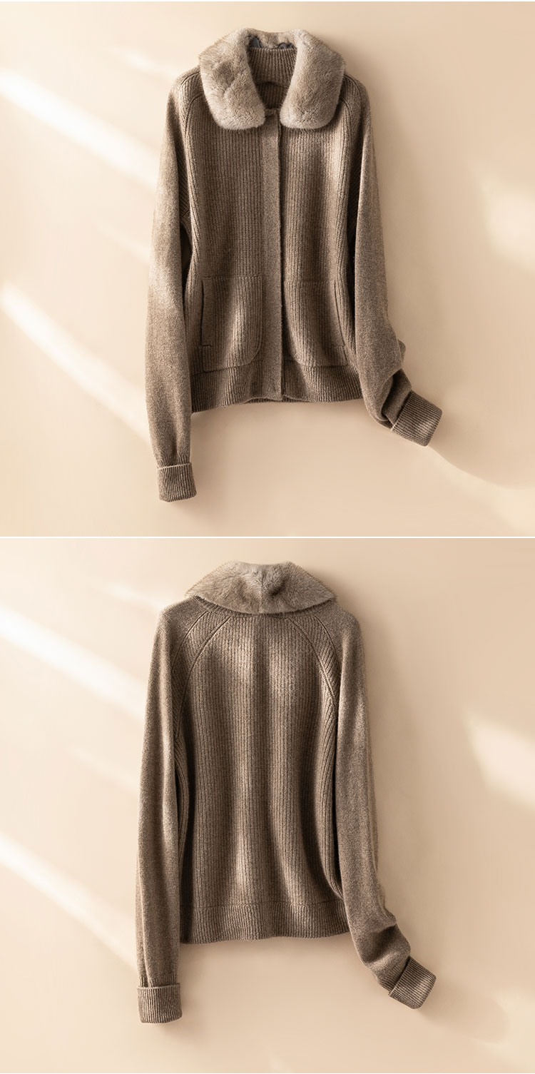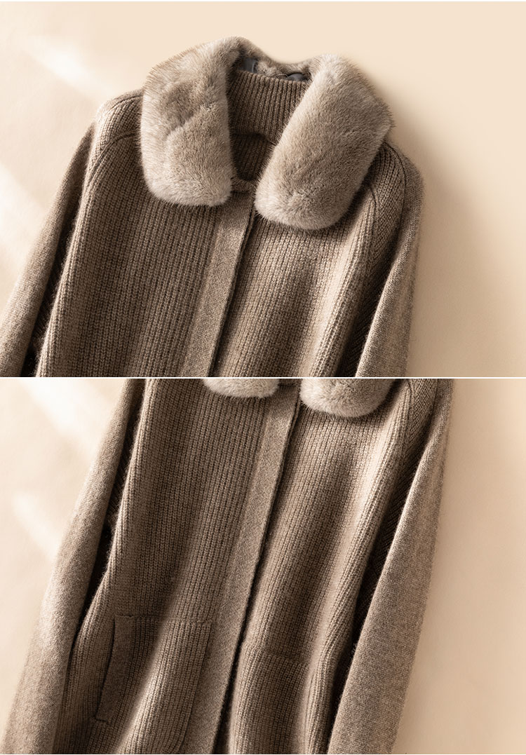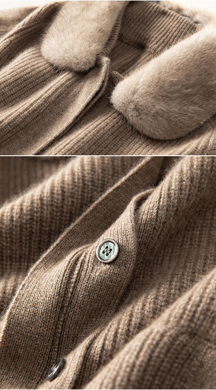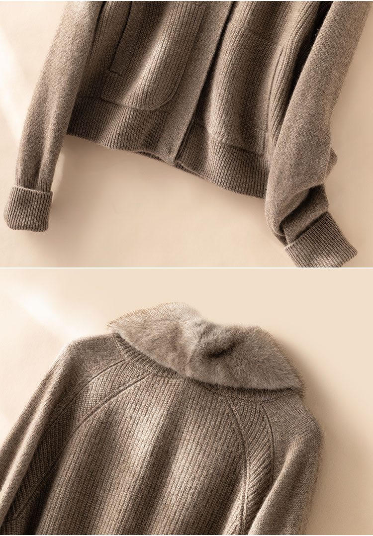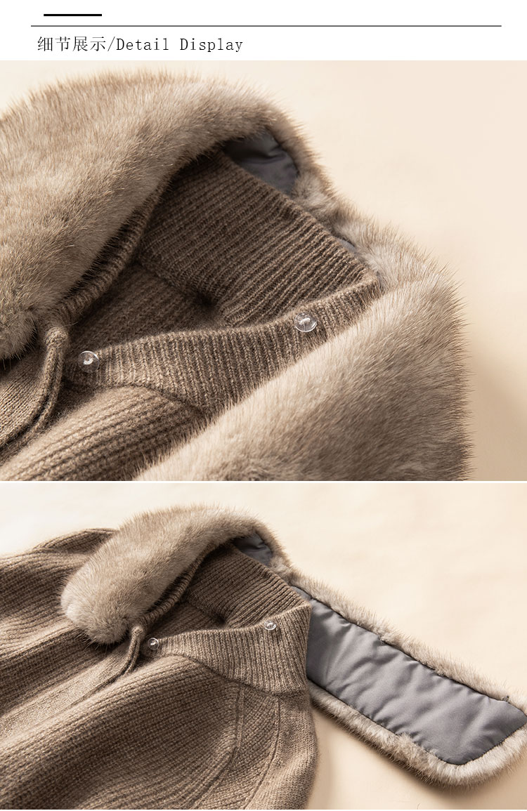 100%BABY小山羊绒~翻领开衫女可拆卸水貂毛领外套BABY250413