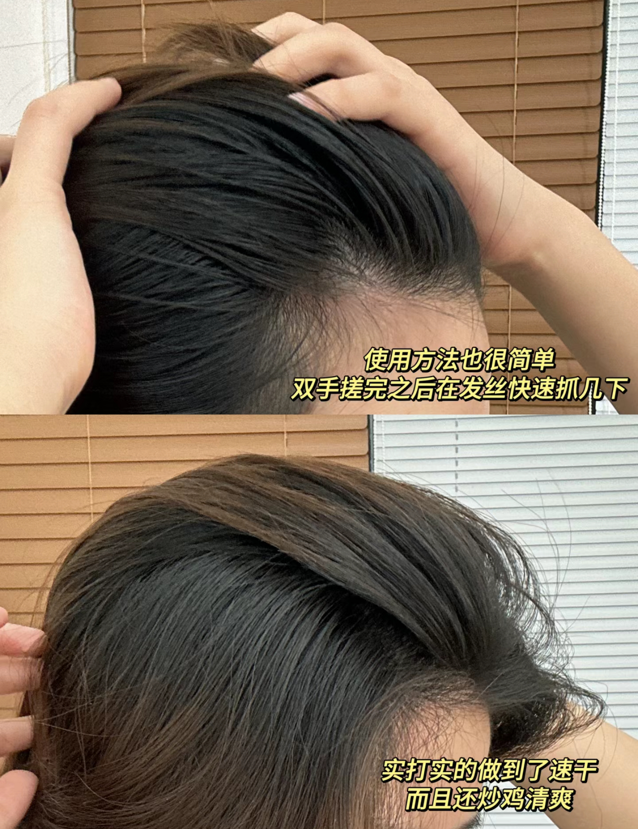 在手心搓开后直接抓到头发上,油成条形码的刘海和扁塌头顶真的瞬间清爽干净了!!