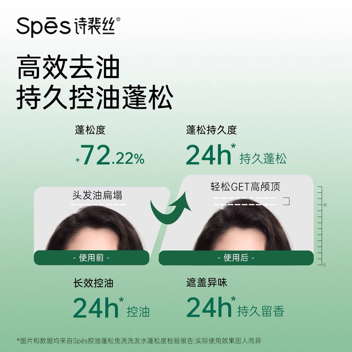 可以即刻去油 ,令发根达到长效控油蓬松