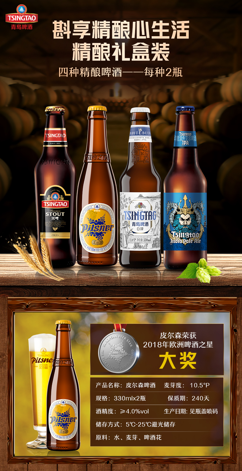 青岛啤酒精酿小瓶330*8礼盒箱啤