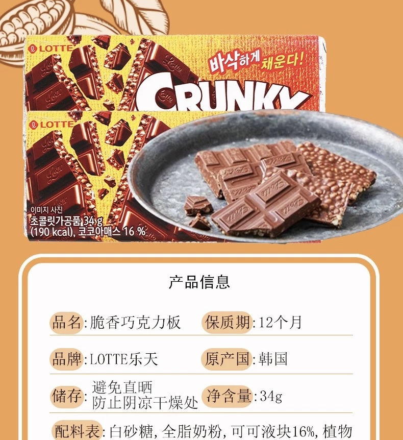乐天 脆香巧克力板 34g