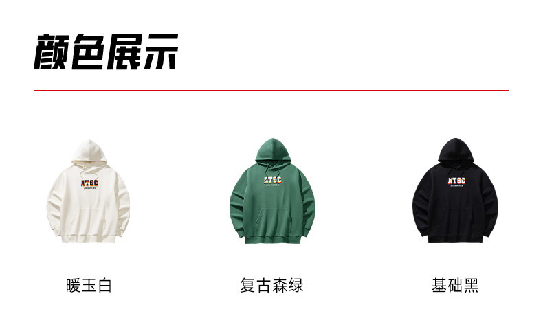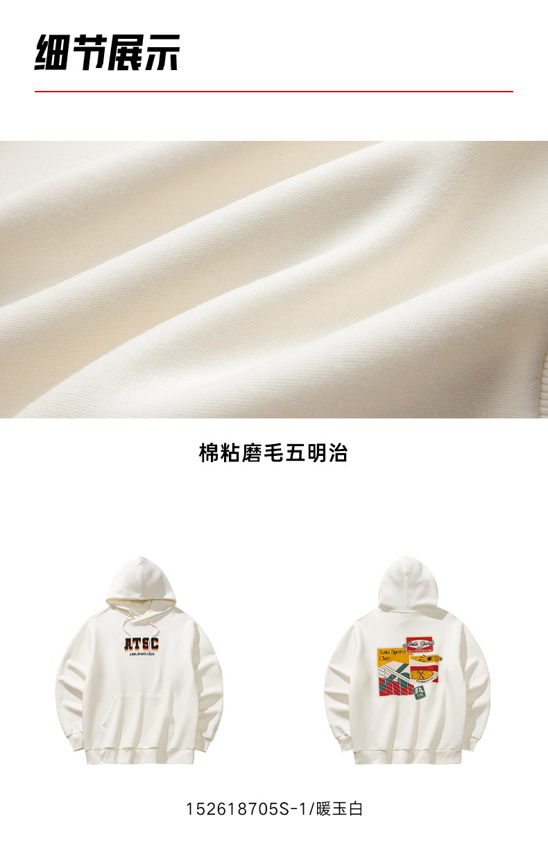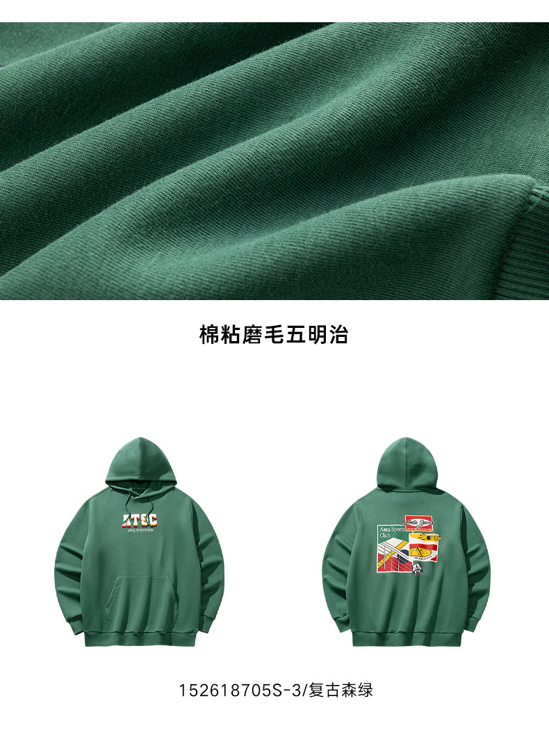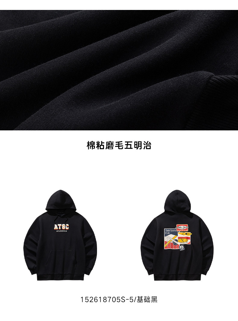 安踏连帽卫衣男士新款运动复古宽松百搭长袖运动服上衣152618705S