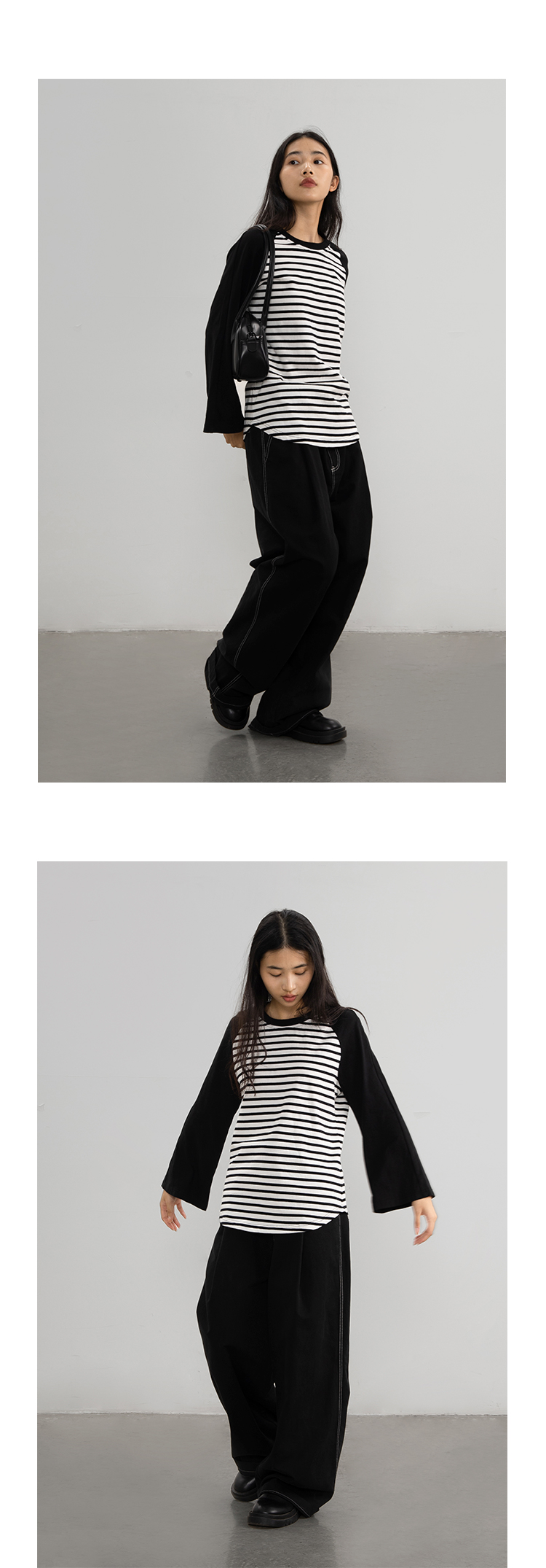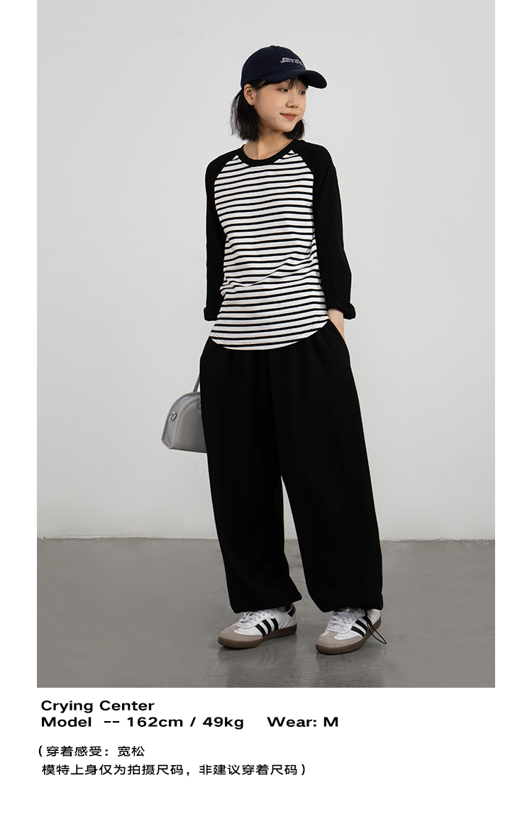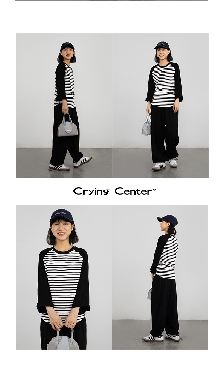 CryingCenter 90S复古经典 黑白条纹拼接TEE 长袖