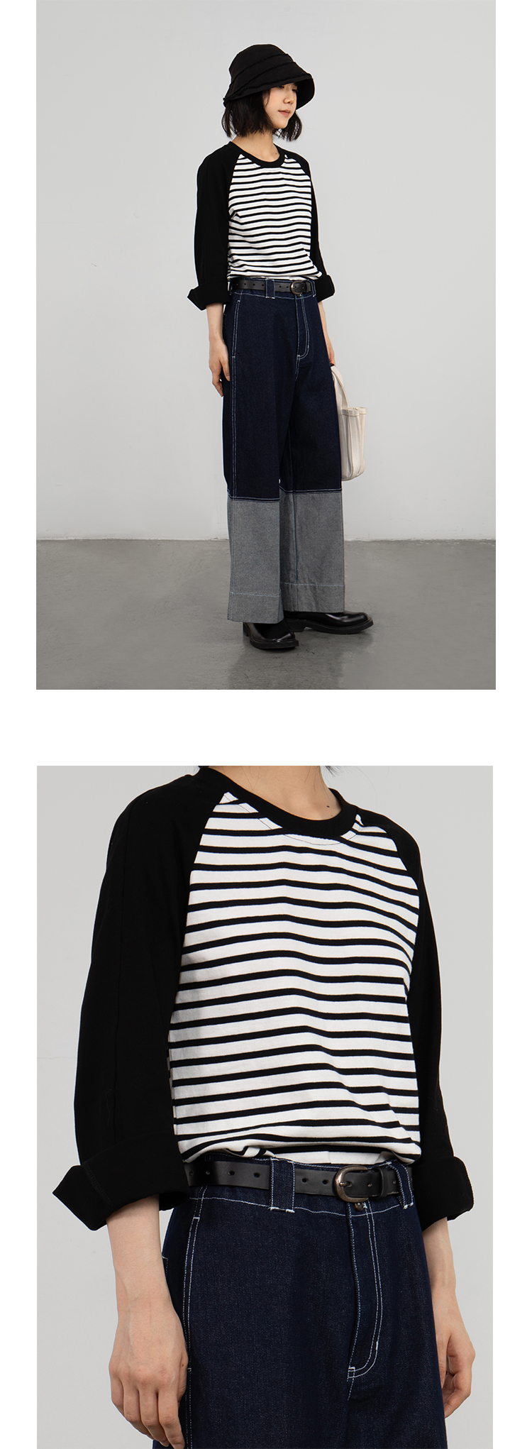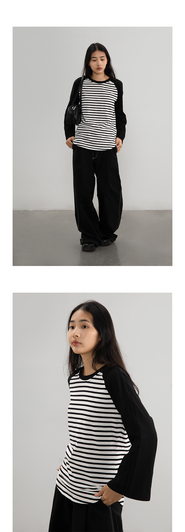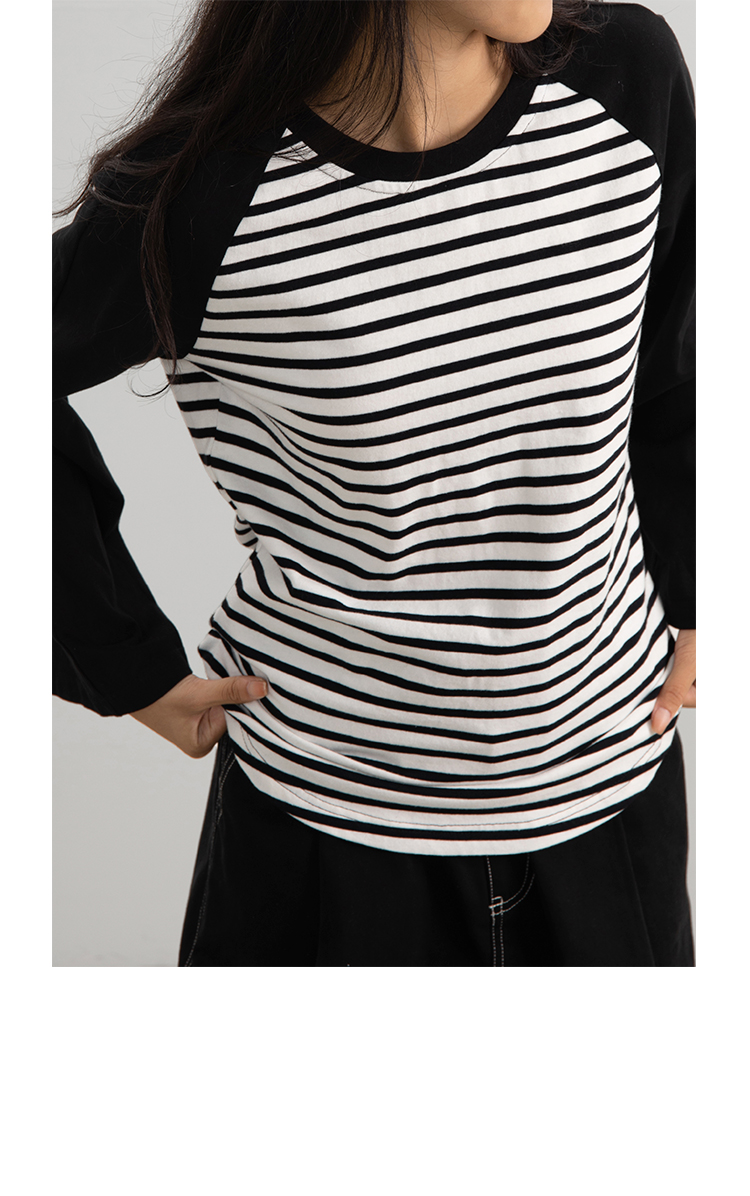CryingCenter 90S复古经典 黑白条纹拼接TEE 长袖