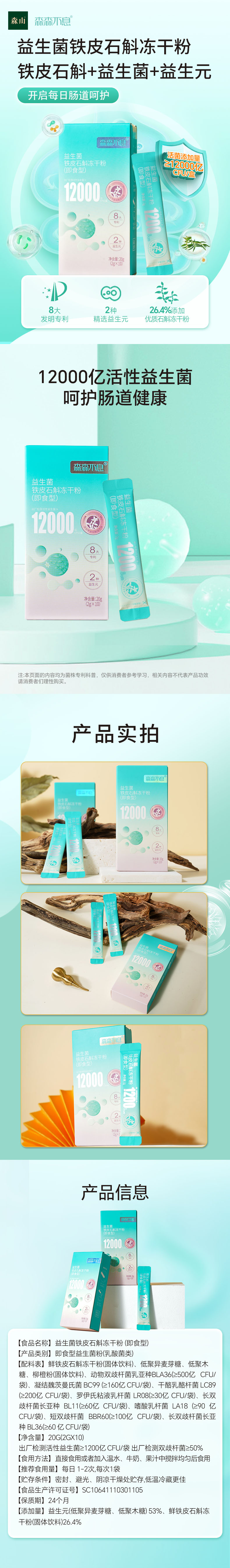 【新品】森森不息牌益生菌铁皮石斛冻干粉2g*10袋
