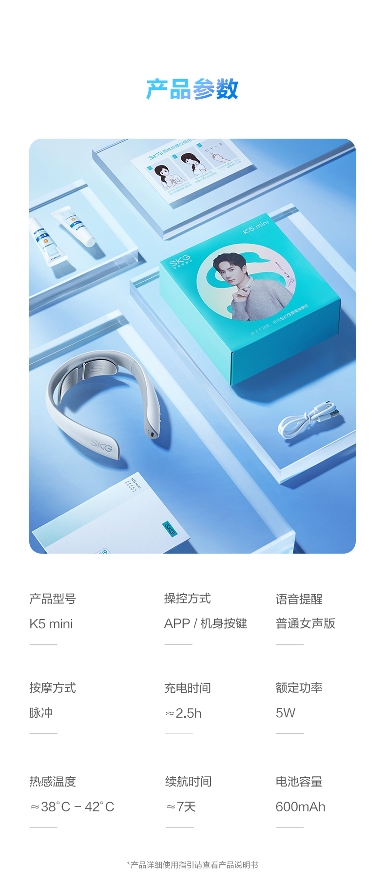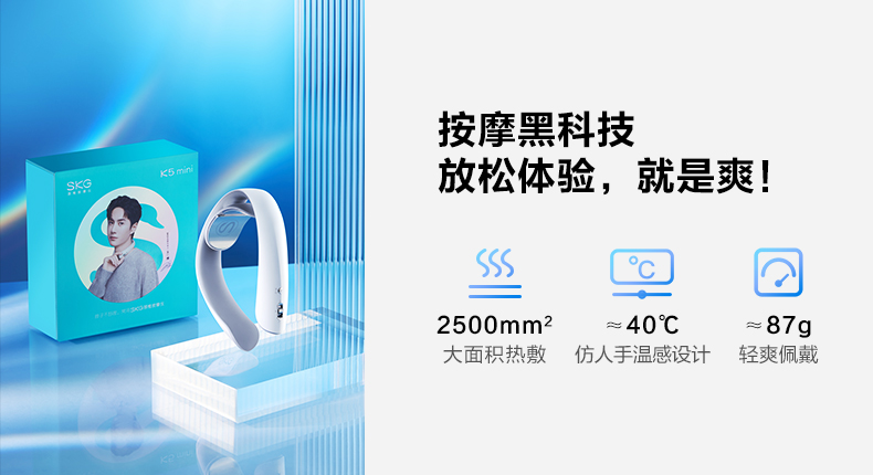 SKG颈椎按摩器K5mini肩颈按摩仪蓝牙舒缓颈部热敷脉冲多功能礼物