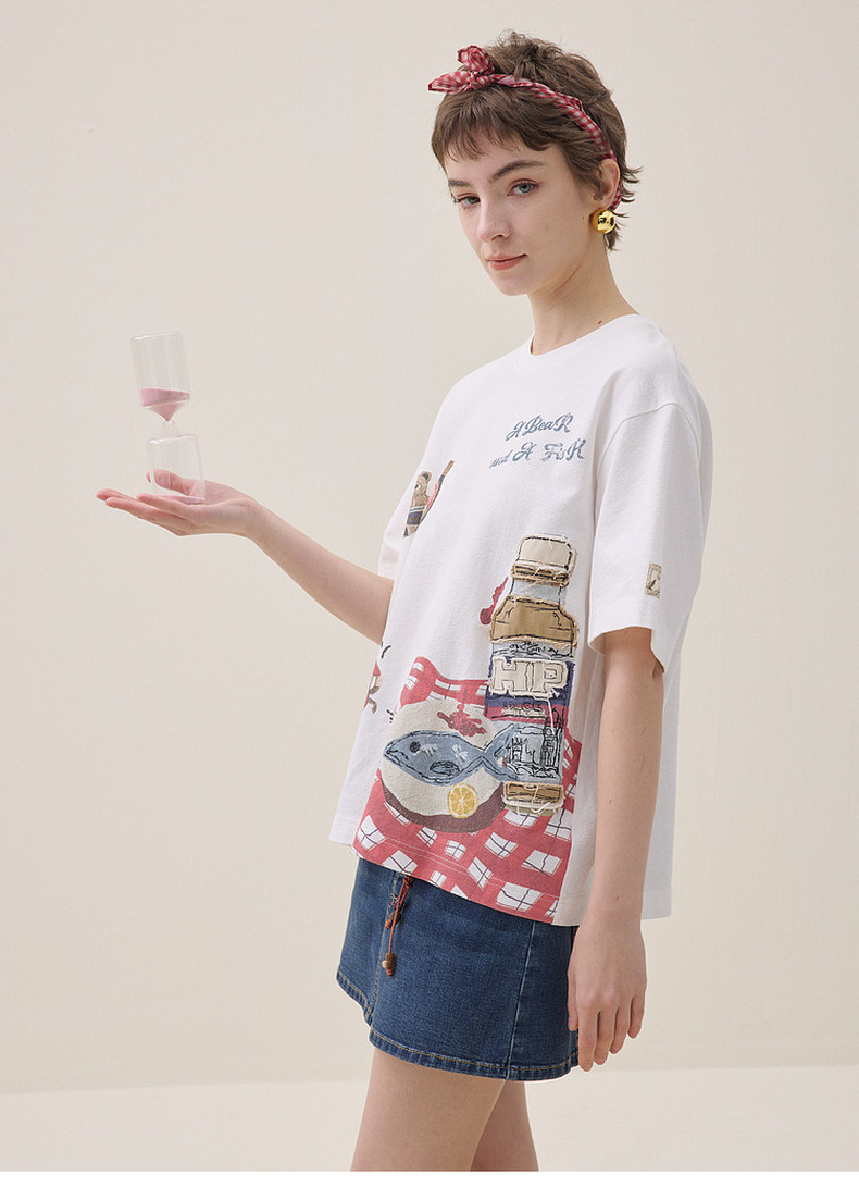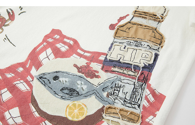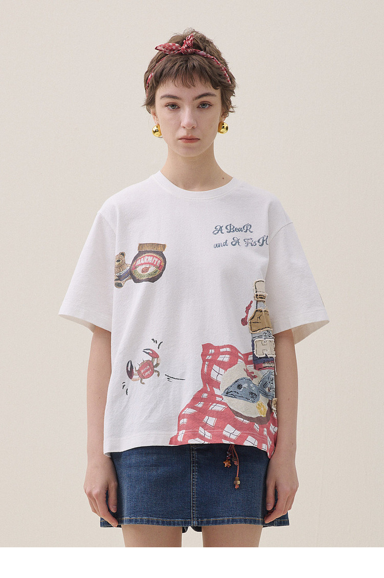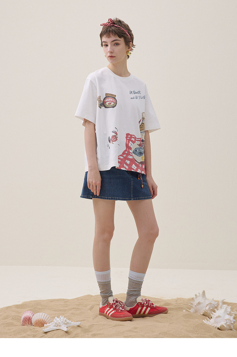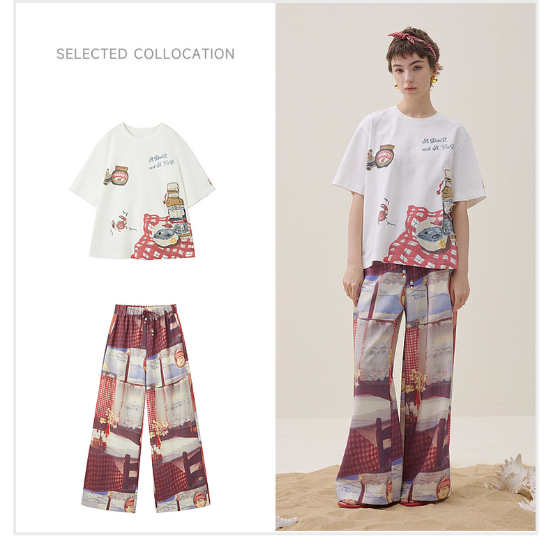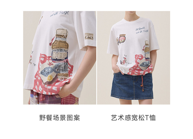谜底印花T恤短袖2026夏新品趣味红格立体绣花复古活泼女262MT0605