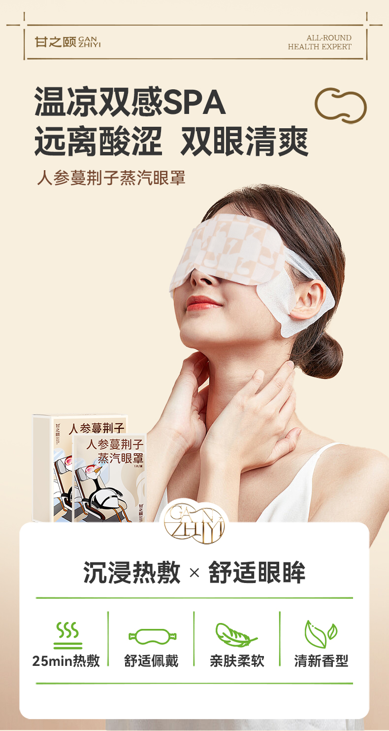 甘之颐 艾草蒸汽眼罩 5片/盒 睡眠热敷眼贴蒸气眼罩遮光眼罩眼疲劳