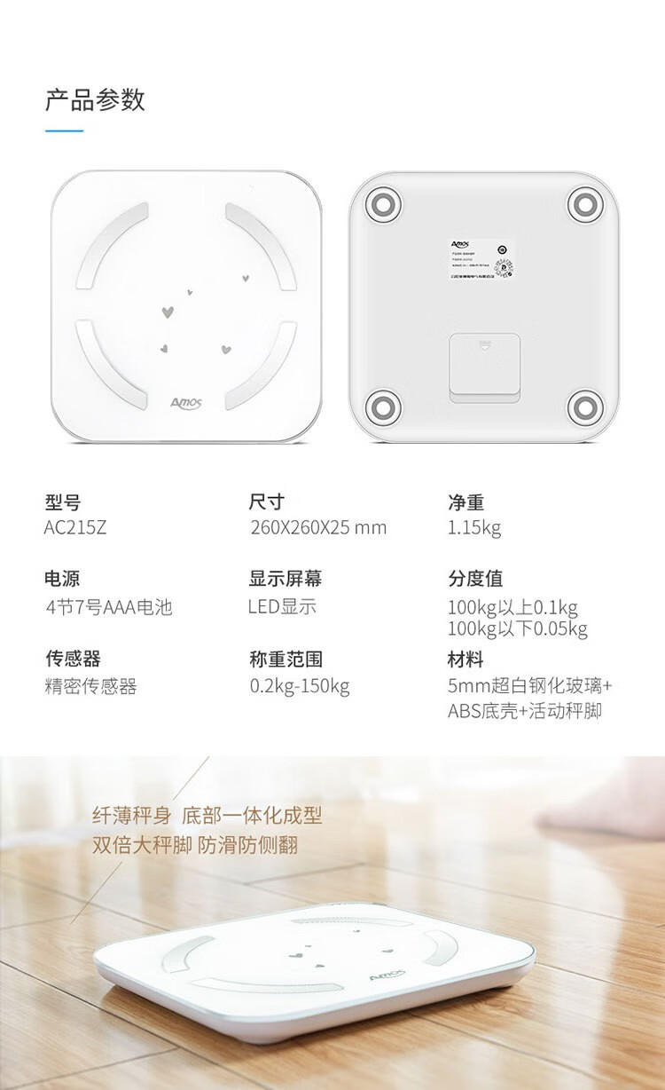 亚摩斯 体脂秤 AC215Z 白色 电池