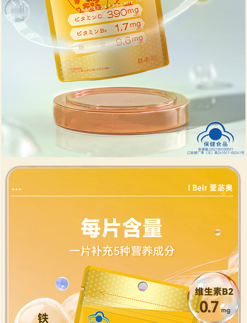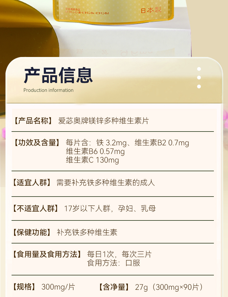 爱苾奥牌 铁多种维生素片(营养素补充剂)90片