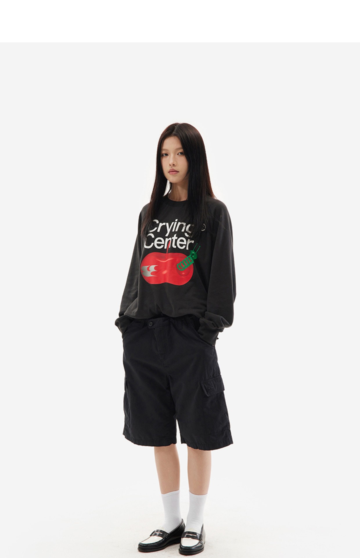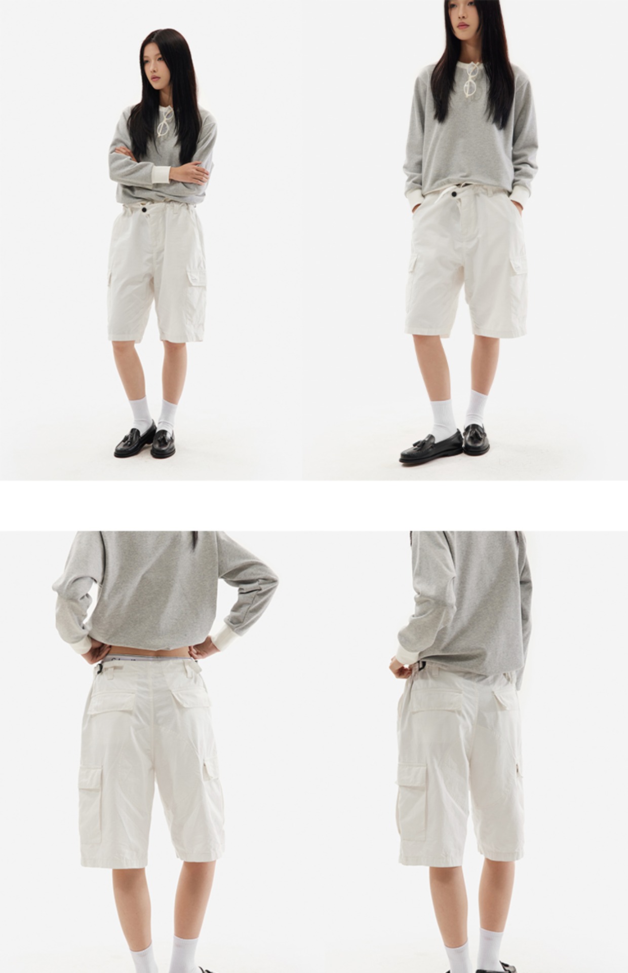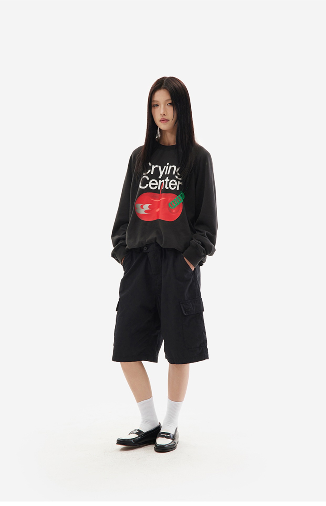 Crying Center 洗水工装口袋中裤伞兵裤 情侣 白黑 哭喊中心
