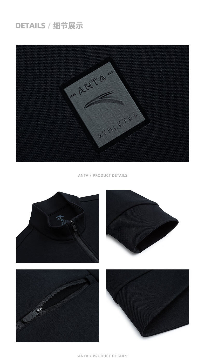 安踏(ANTA)针织运动外套男2024秋冬季新款立领开衫夹克训练上衣152447731