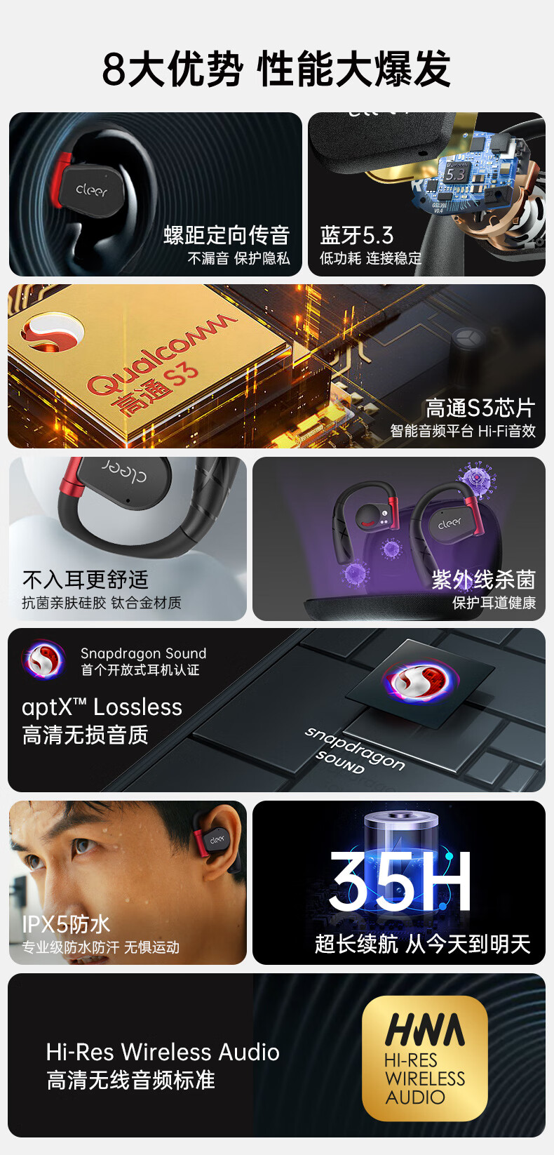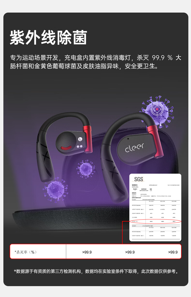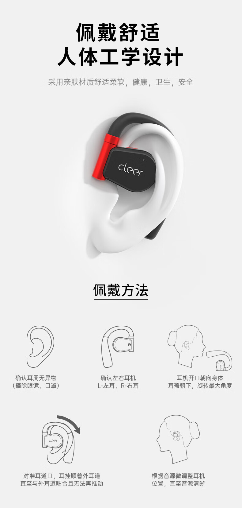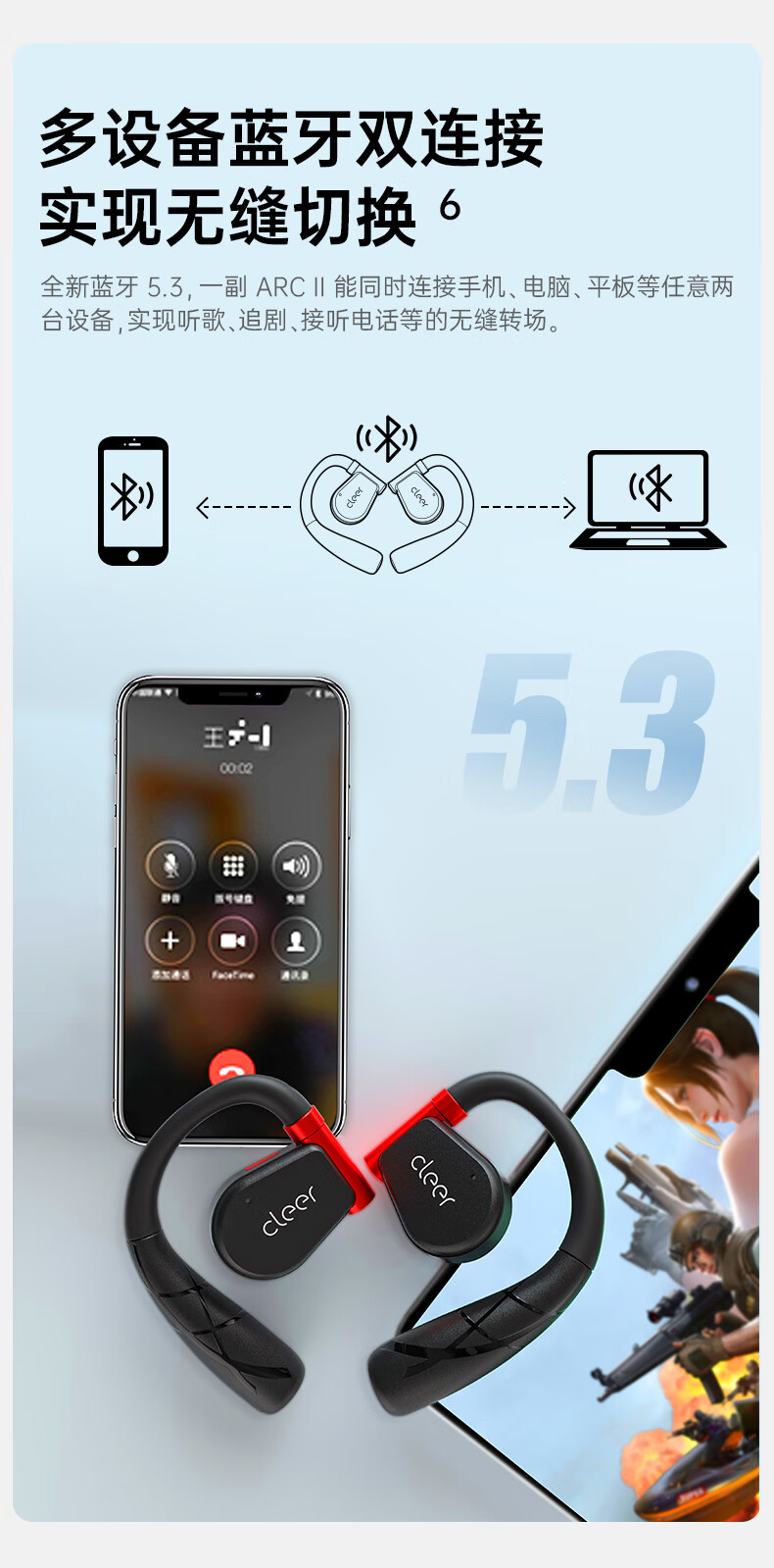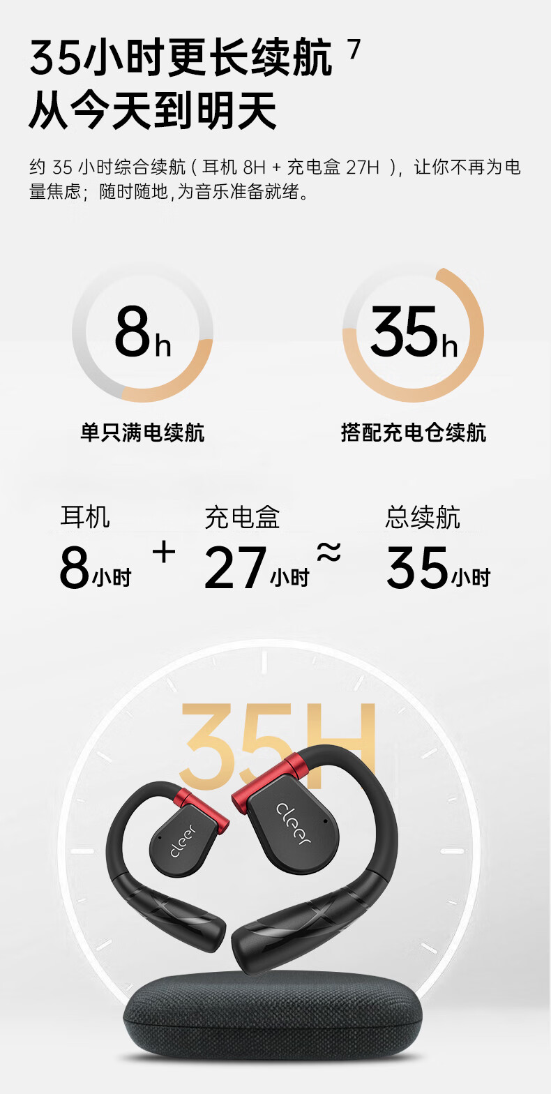 cleer【任贤齐代言】ARCII不入耳开放式智能运动无线蓝牙挂耳式跑步耳机骨传导升级适用华为苹果节日礼物【运动版】