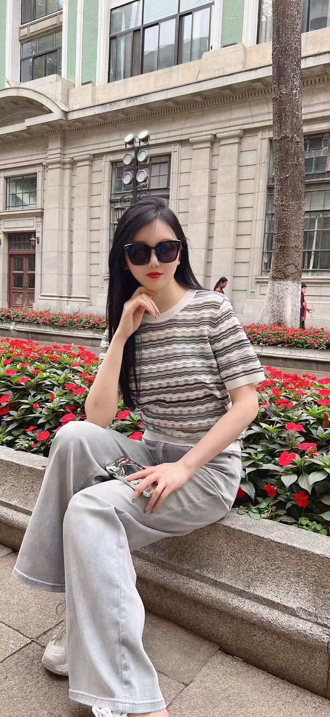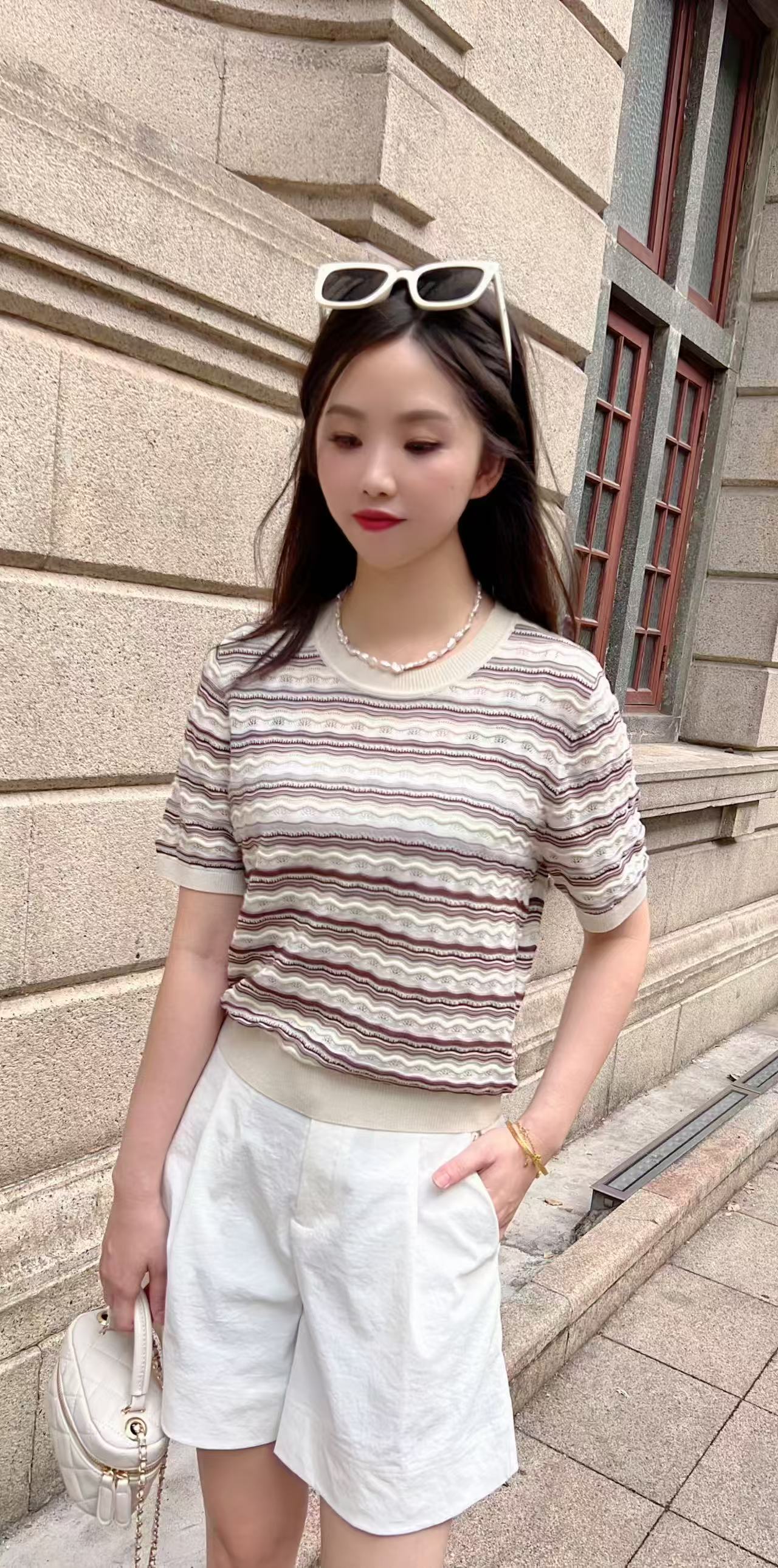丽莫杏咖色条纹上衣