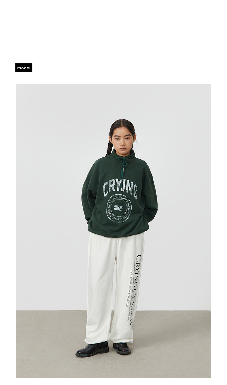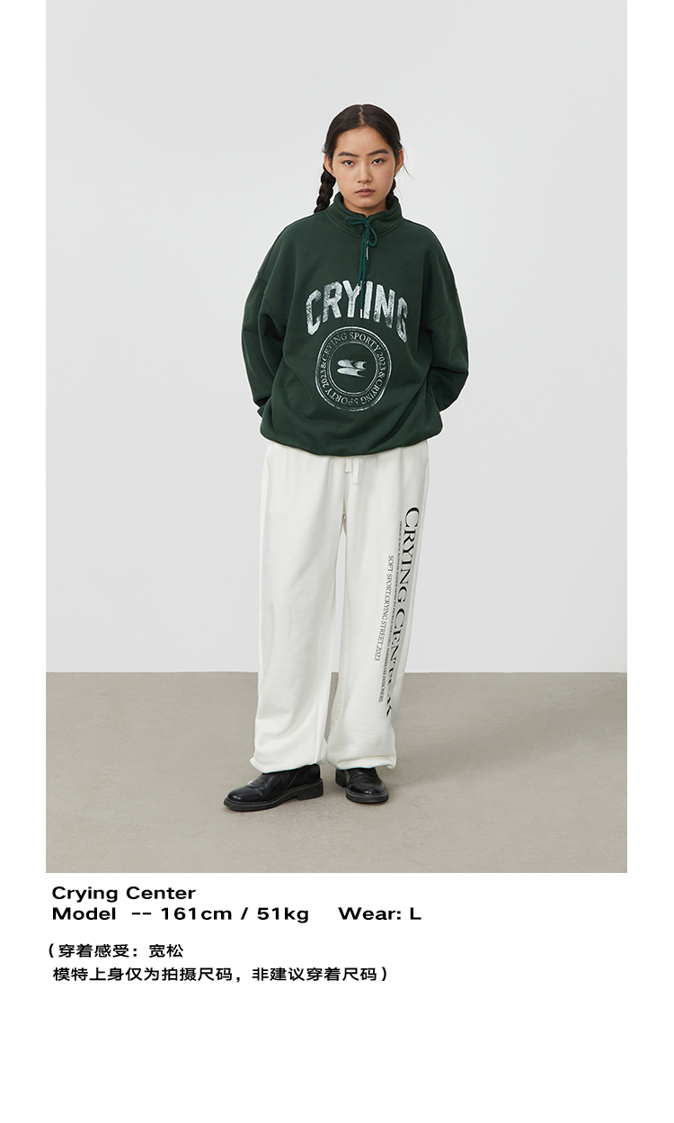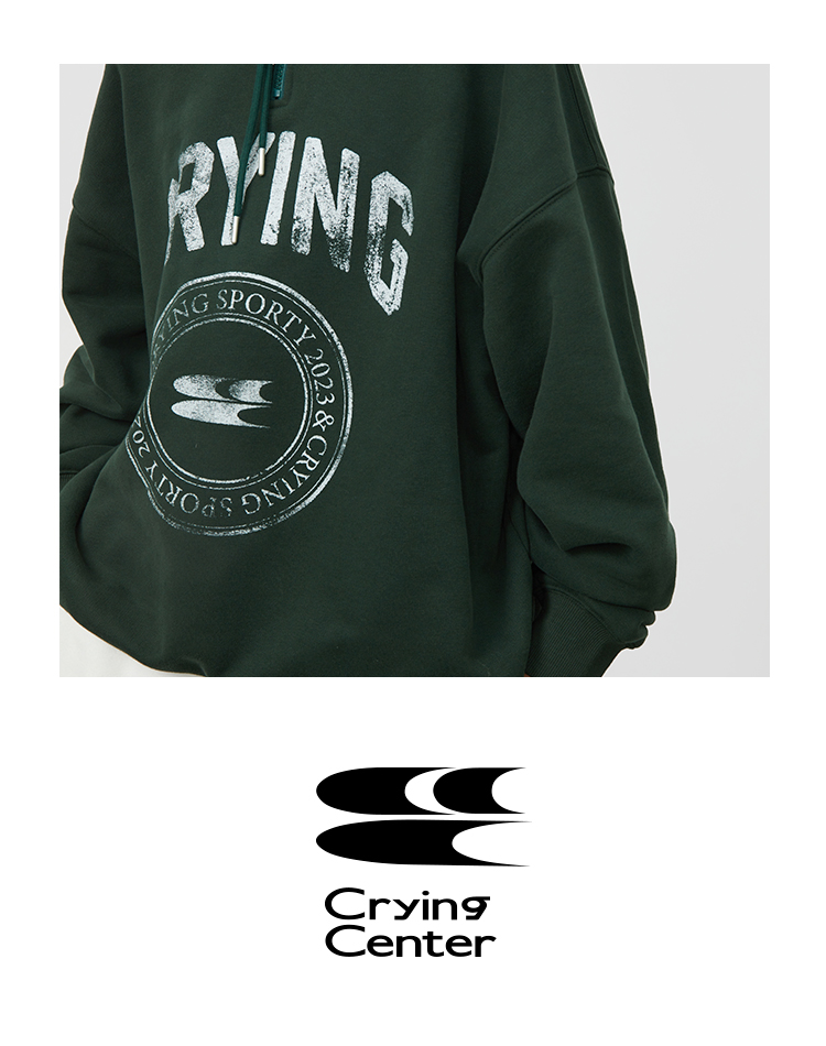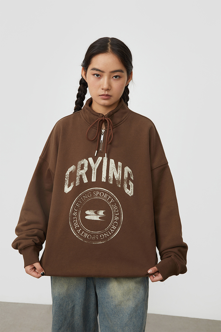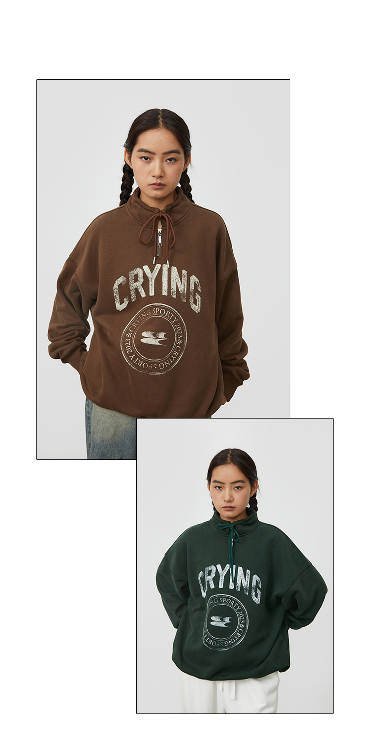 CryingCenter 复古图章高领抽绳款卫衣棕色墨绿色加绒休闲情侣