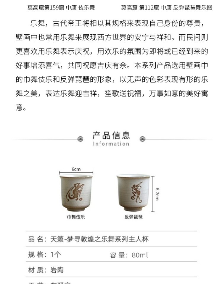 敦煌研究院【敦煌乐舞系列主人杯】茶杯博物馆文创生日礼物送长辈