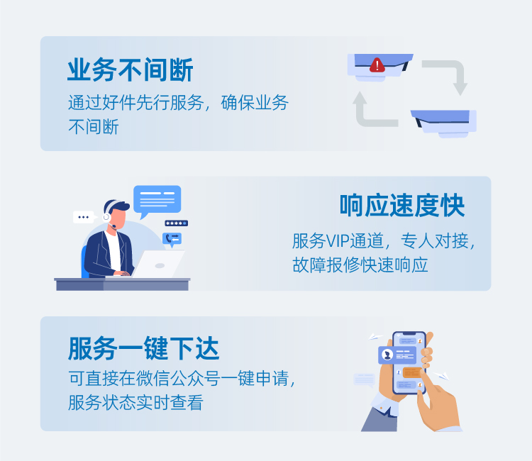 我们为客户提供家庭、商住场景的24小时在线防盗、防火、防毒以及无人化管理服务。实现老旧电子、消防设备“e”键入云,99%时间无故障使用,并升级智能化能力。