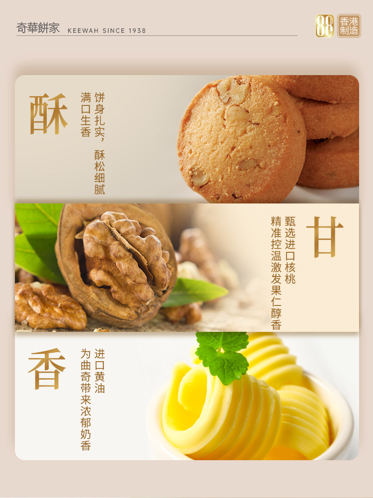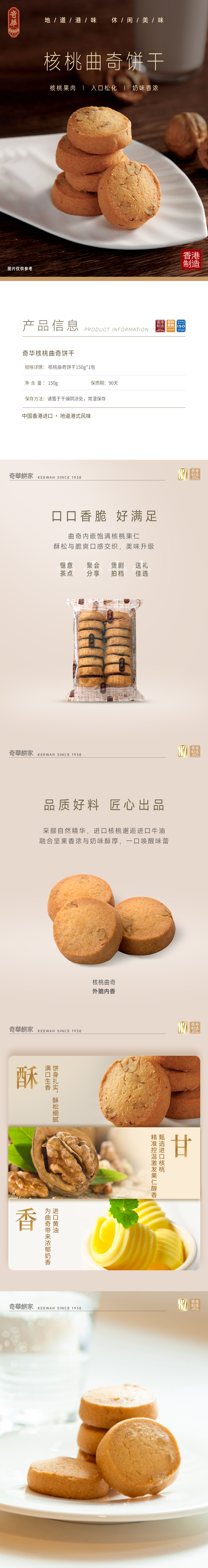 【奇华核桃曲奇饼干150克】中国香港进口休闲零食品下午茶早餐