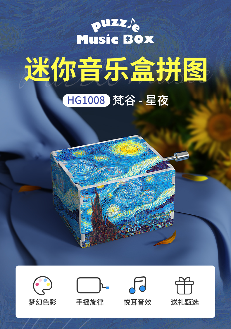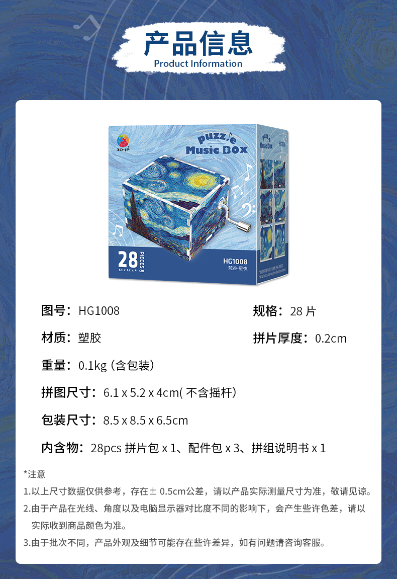 28片 音乐盒拼图 HG1008 梵谷-星夜
