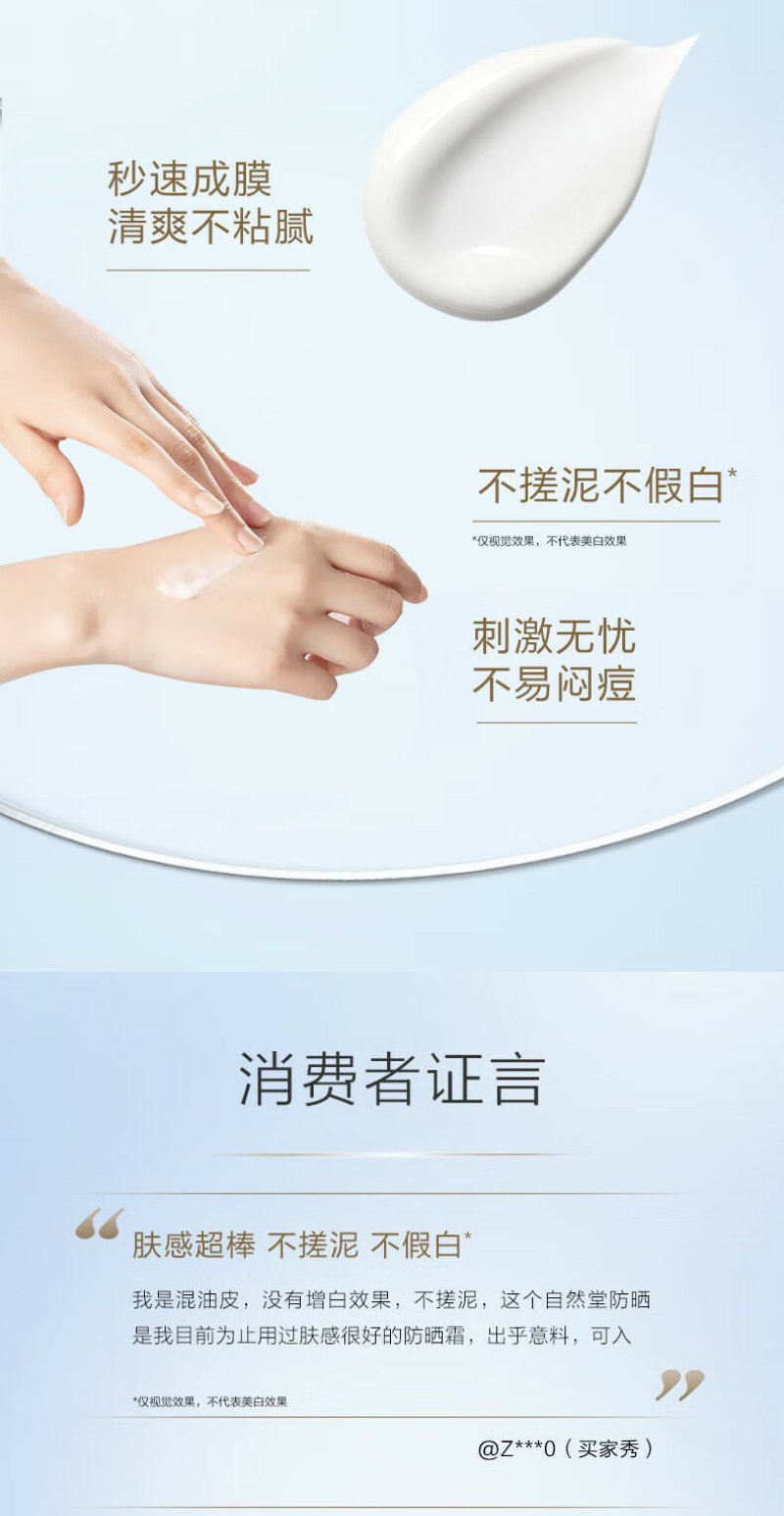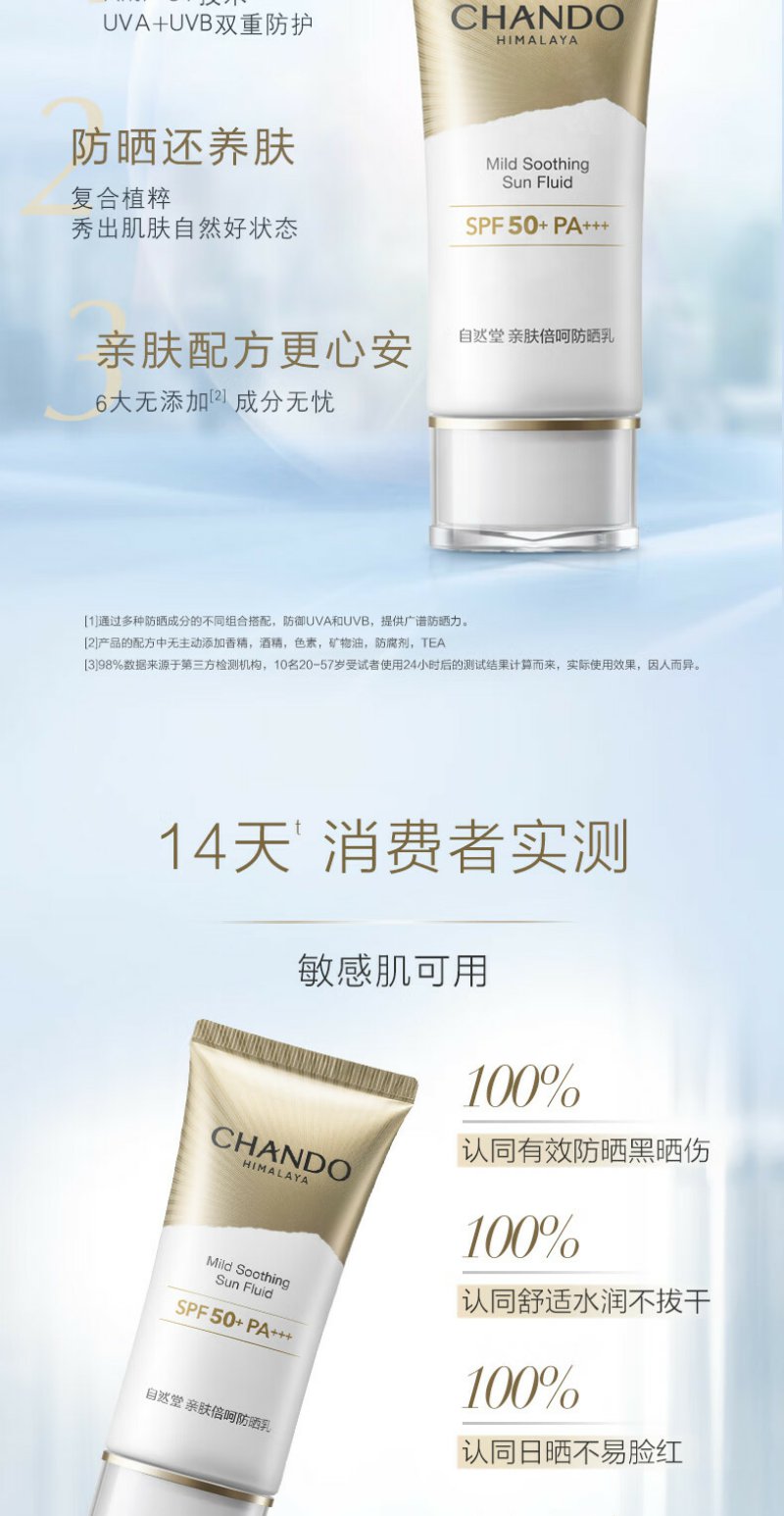 自然堂(CHANDO)亲肤倍呵防晒乳 SPF50+PA+++50mL(军训防晒服帖不假白清爽持久)