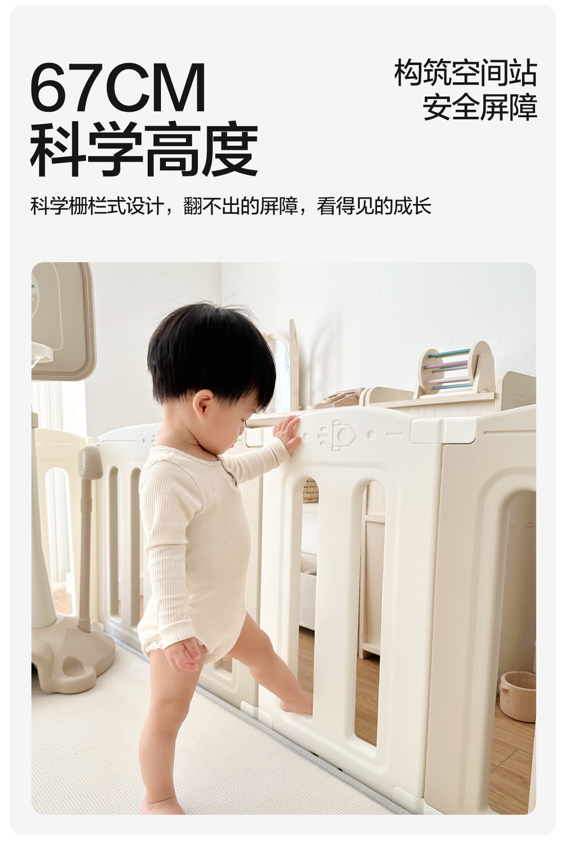 贝易宇航员宝宝游戏爬爬垫围栏婴儿防护栏室内家用地上爬行垫一体【部分选项会员下单送:小熊收纳筐+伙伴龙故事机,围栏+爬行垫套餐还送独角兽五合一摇马,联系客服参加哦】
